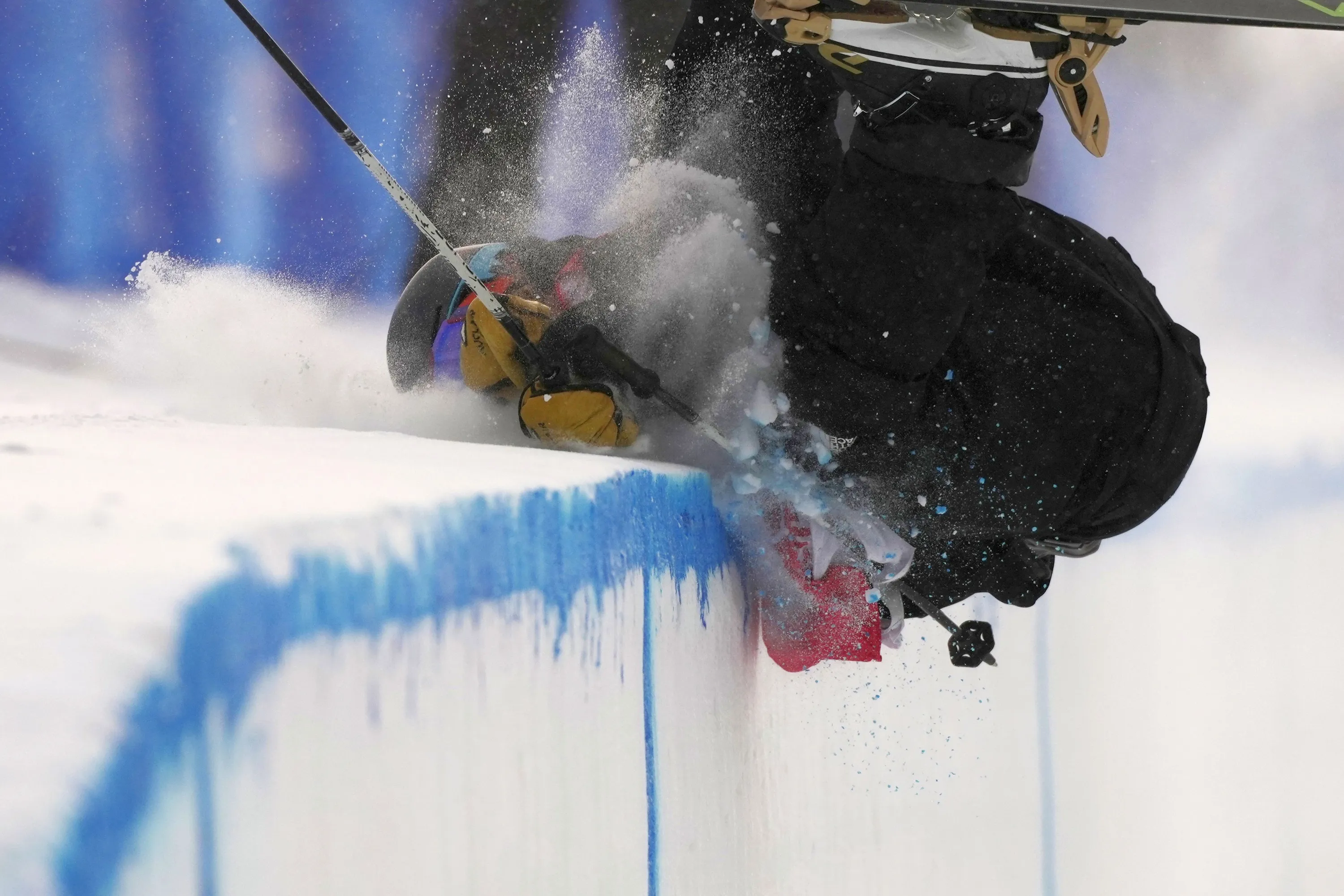 New Zealand's Ben Harrington crashes into the edge of the course during the men's halfpipe qualification at the 2022 Winter Olympics, Thursday, February 17, 2022, in Zhangjiakou, China. (Photo by Francisco Seco/AP Photo)