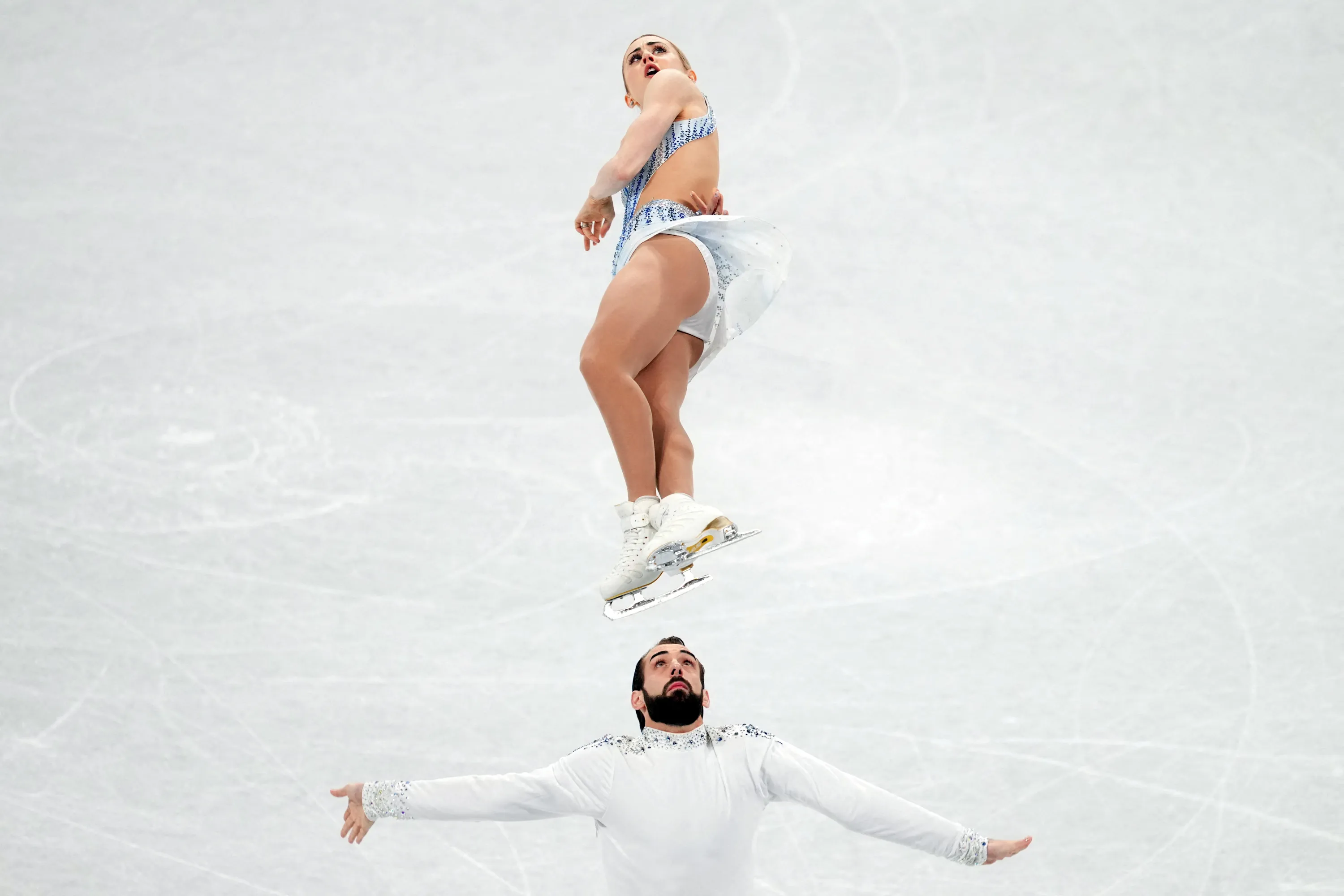 Ashley Cain-Gribble and Timothy Leduc of Team United States react after the Pair Skating Short Program on day fourteen of the Beijing 2022 Winter Olympic Games at Capital Indoor Stadium on February 18, 2022 in Beijing, China. (Photo by Aleksandra Szmigiel/Reuters)