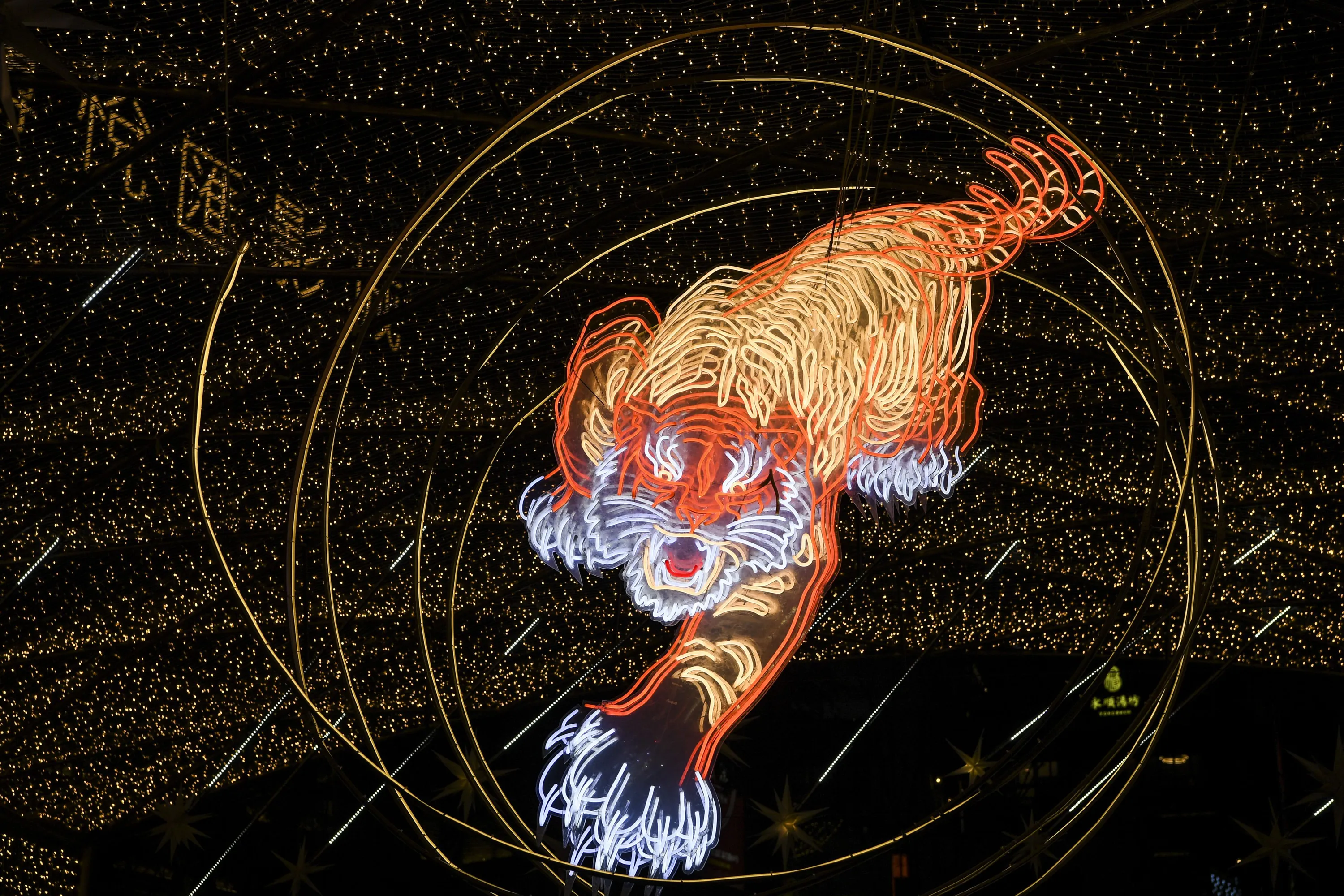 Photo shows light installations before the upcoming Lantern Festival in southwest China's Chongqing Municipality, February 11, 2022. (Photo by Xinhua News Agency/Rex Features/Shutterstock)