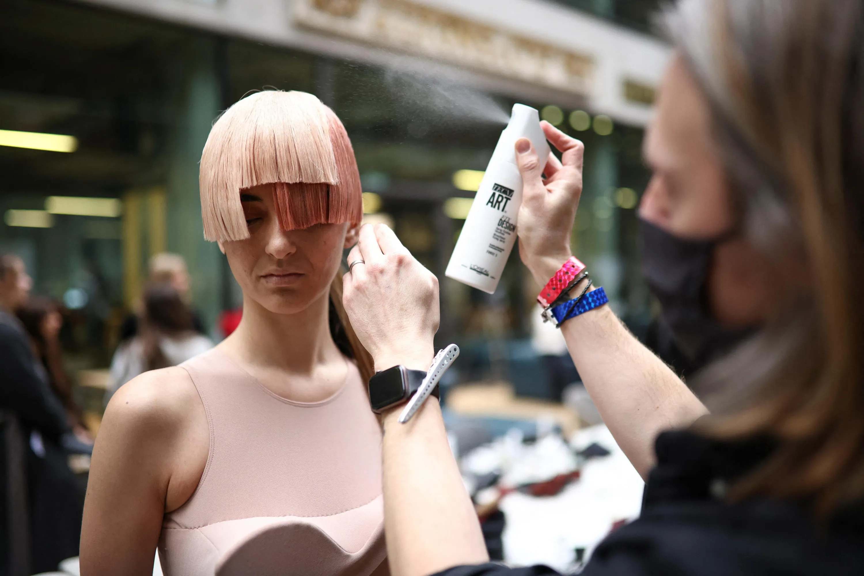 Models prepare backstage ahead of the Central St Martins MA catwalk show at London Fashion Week in London, Britain, February 20, 2022. (Photo by Henry Nicholls/Reuters)