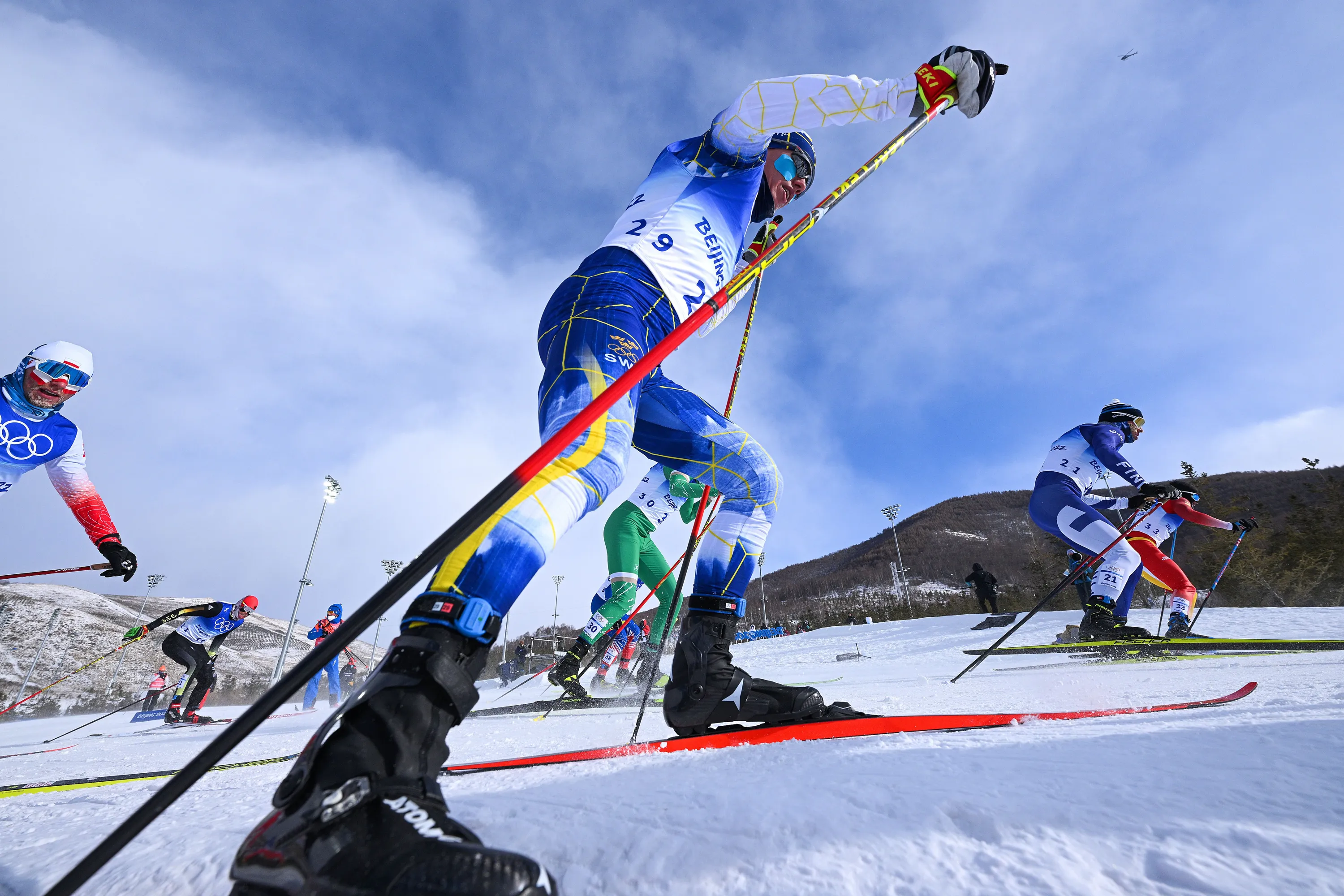 Leo Johansson of Team Sweden competes during the Men's Cross-Country Skiing 50km Mass Start Free on Day 15 of the Beijing 2022 Winter Olympics at The National Cross-Country Skiing Centre on February 19, 2022 in Zhangjiakou, China. The event distance has been shortened to 30k due to weather conditions. (Photo by Matthias Hangst/Getty Images)