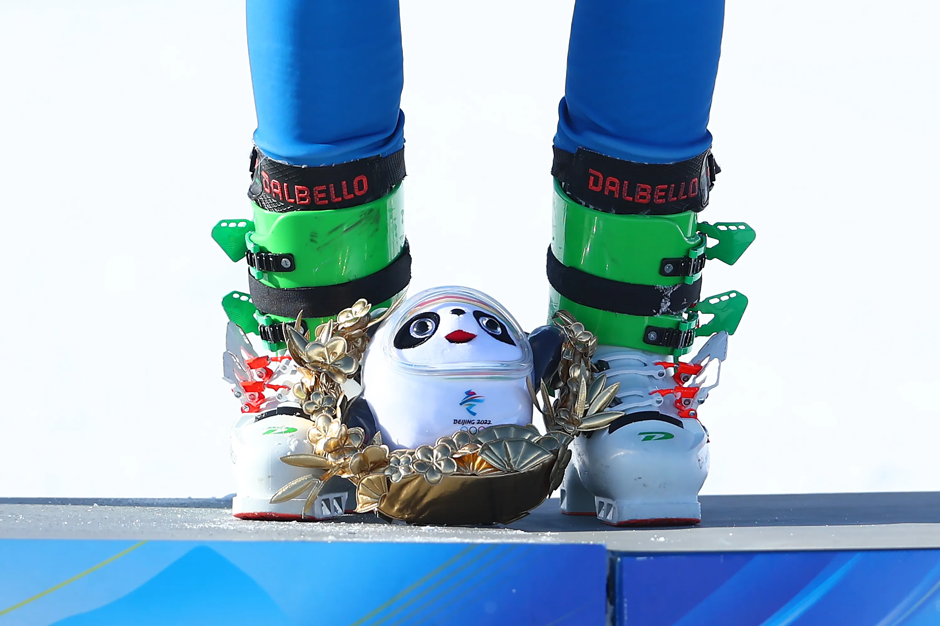 Detail of Bronze medallist Sergey Ridzik of Team ROC during the Men's Ski Cross flower ceremony on Day 14 of the Beijing 2022 Winter Olympics at Genting Snow Park on February 18, 2022 in Zhangjiakou, China. (Photo by Clive Rose/Getty Images)