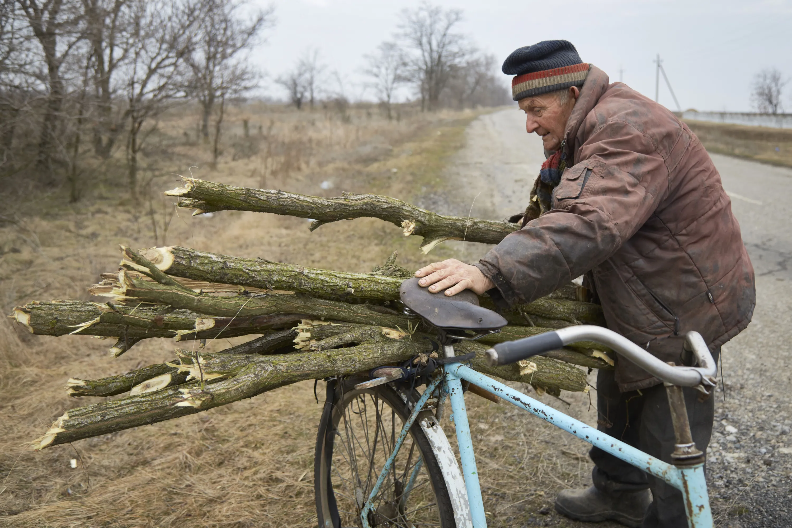 Pensioner Viktor collects firewood on February 16, 2022 in Novokostyantynivka Ukraine. (Photo by Chris McGrath/Getty Images)