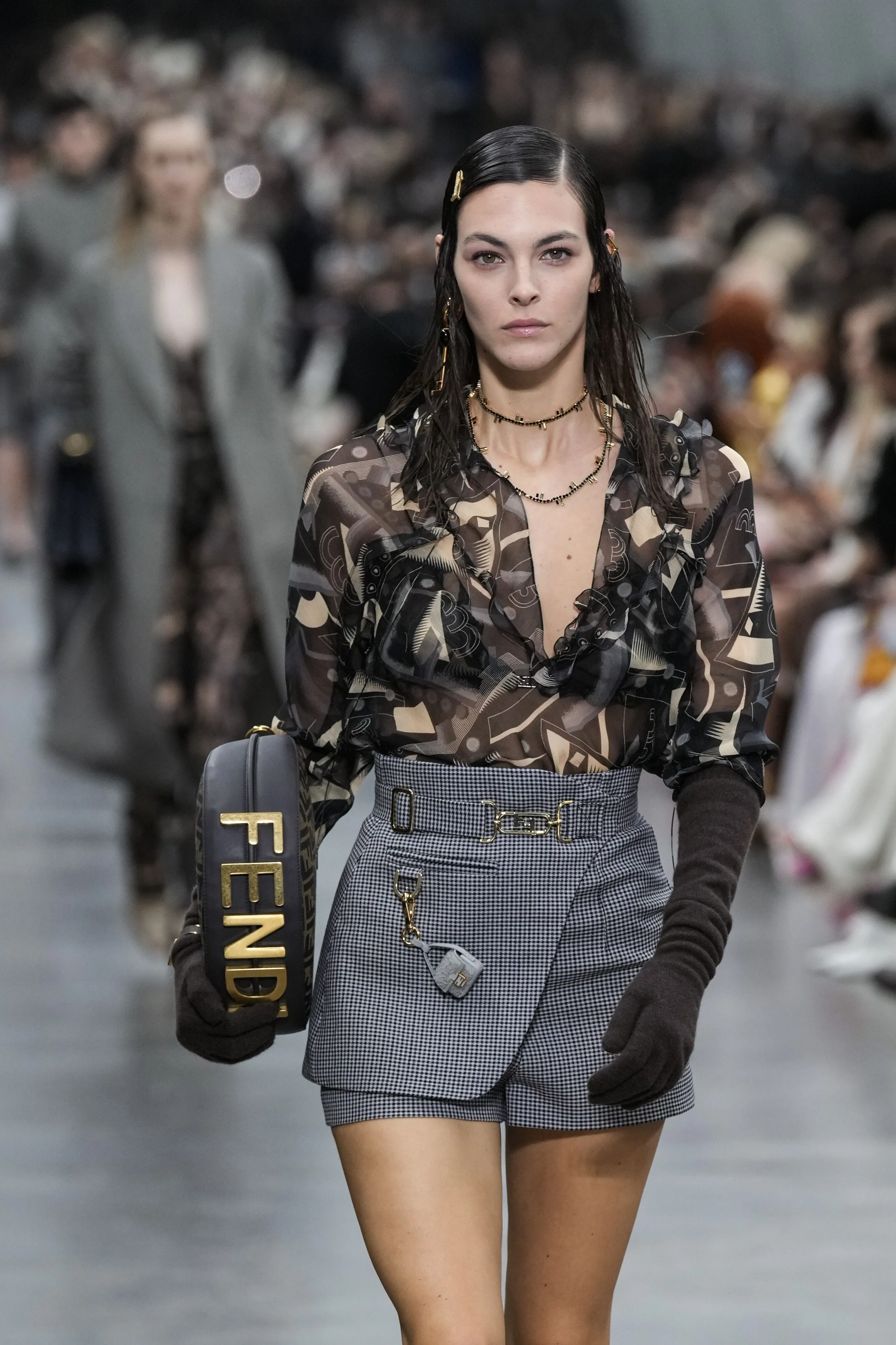 A model wears a creation as part of the Fendi Fall/Winter 2022-2023 fashion collection, unveiled during the Fashion Week in Milan, Italy, Wednesday, February 23, 2022. (Photo by Antonio Calanni/AP Photo)