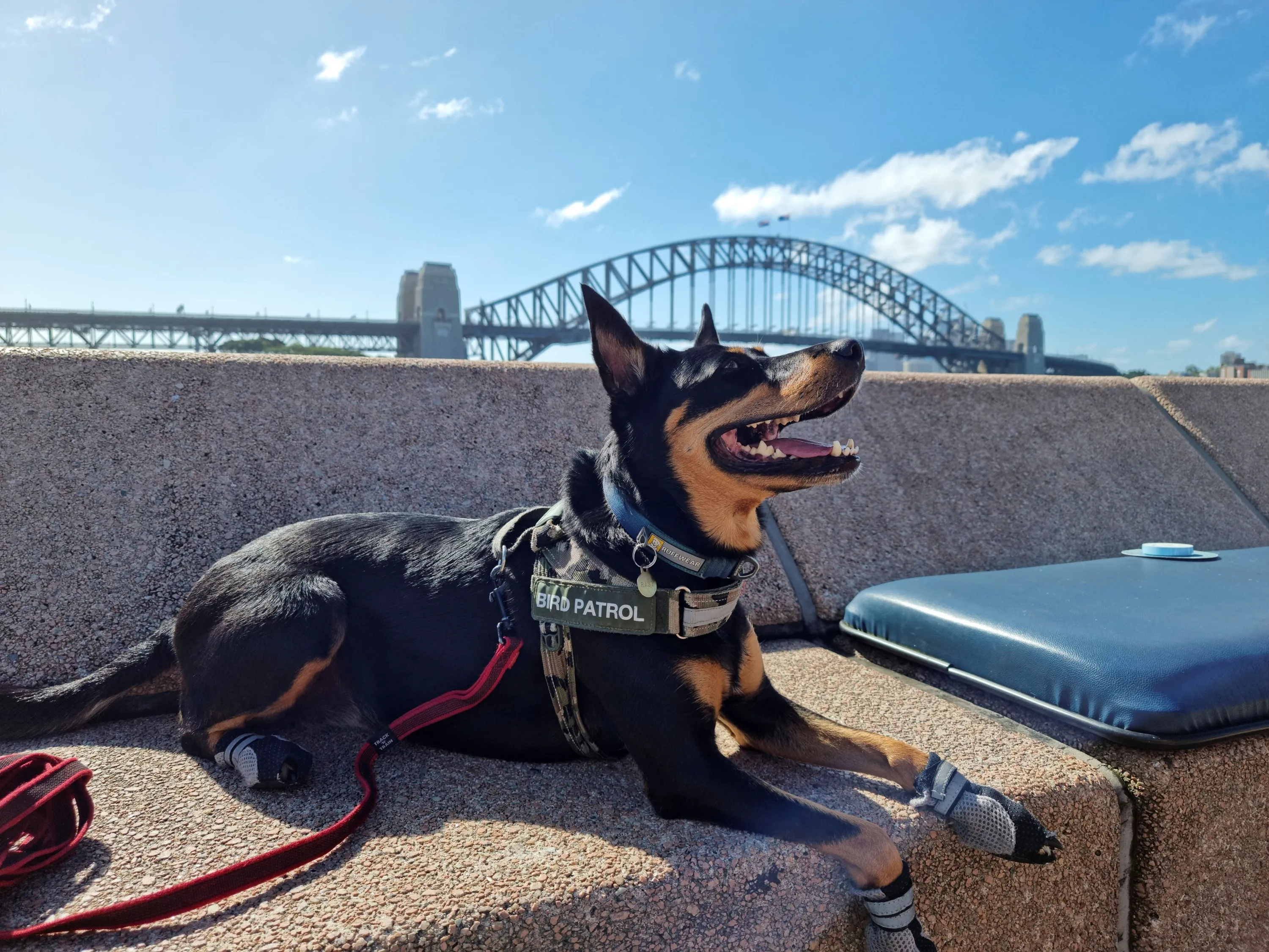 Australian kelpie dog Rasy rests after patrolling for seagulls at Sydney’s Opera Bar in Australia on February 15, 2022. (Photo by James Redmayne/Reuters)