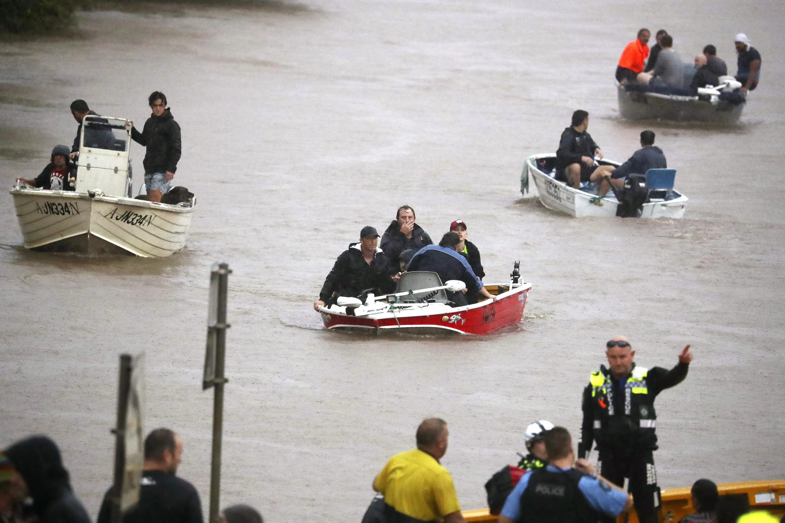 People use small boats to travel through flood water in Lismore, Australia, Monday, February 28, 2022. (Photo by Jason O'Brien/AAP Image via AP Photo)
