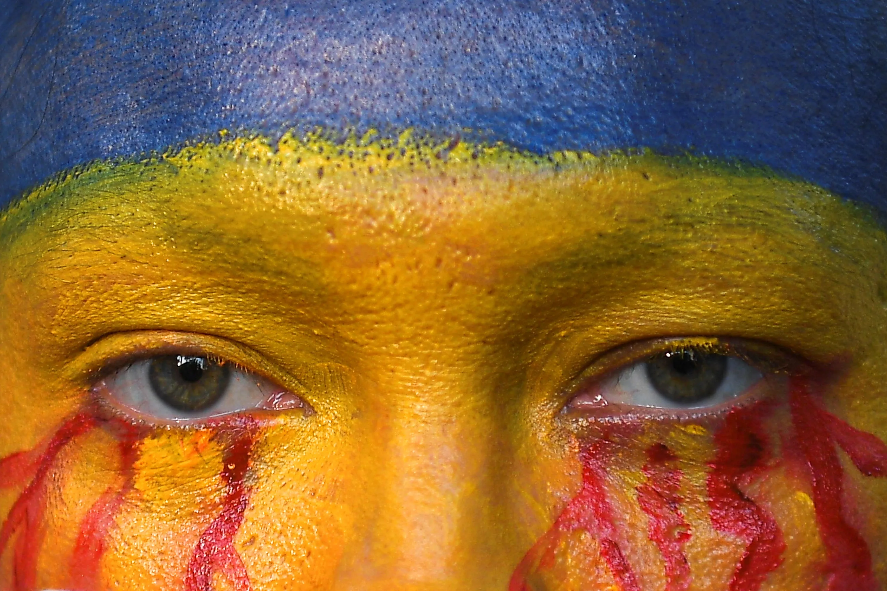 Lidiya Zhuravlyova, a Ukraine-born performance artist, looks on as she takes part in an anti-war protest, after Russia launched a massive military operation against Ukraine, in Bangkok, Thailand on February 27, 2022. (Photo by Chalinee Thirasupa/Reuters)