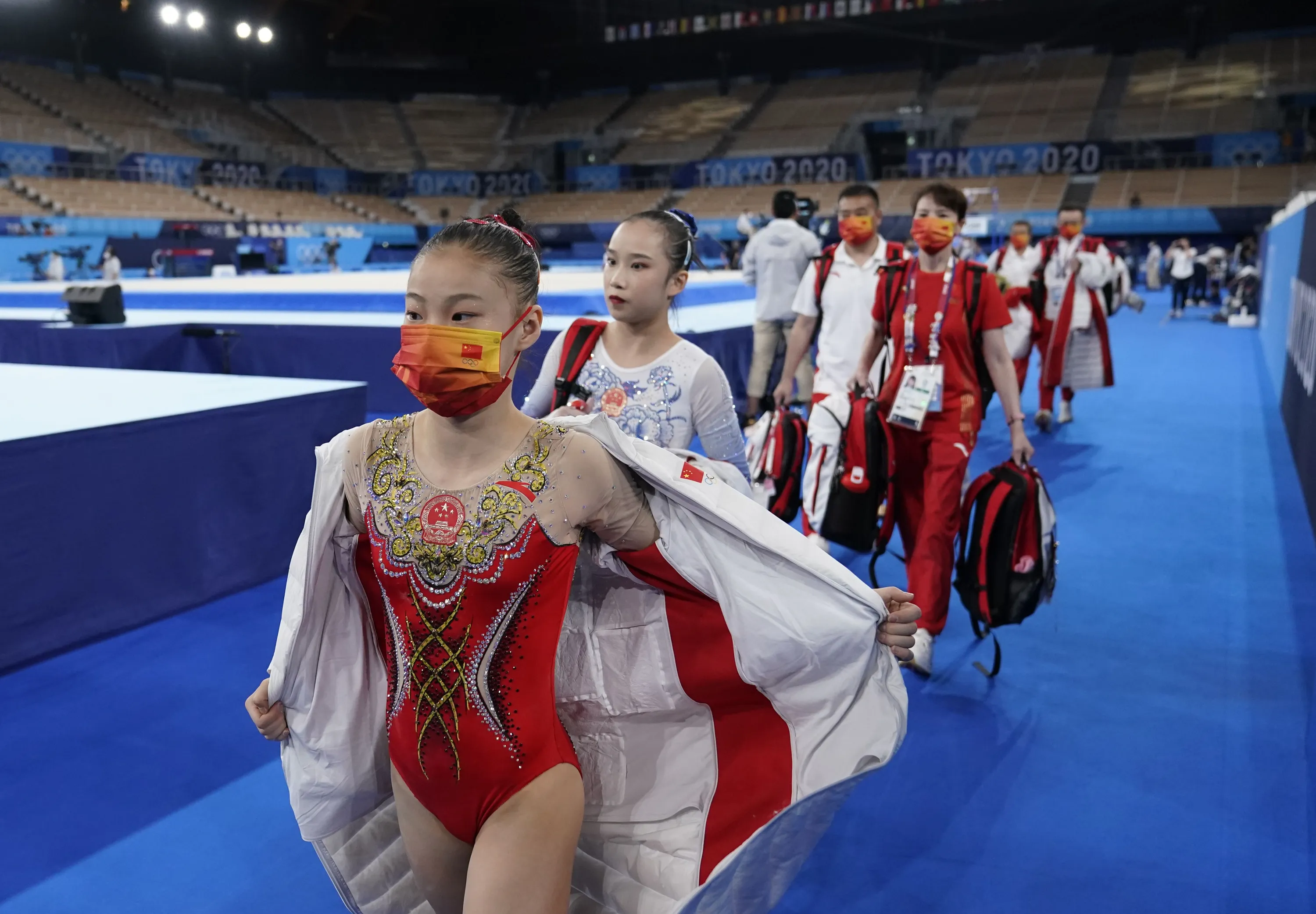 In this July 25, 2021, file photo, members of team China walk to the next apparatus during the women's artistic gymnastic qualifications at the 2020 Summer Olympics in Tokyo. Tokyo Olympians are exercising extraordinary discipline against the coronavirus. They are sealed off in a sanitary bubble that has made competition possible but is also squeezing a lot of fun from their Olympic experience. (Photo by Ashley Landis/AP Photo/File)