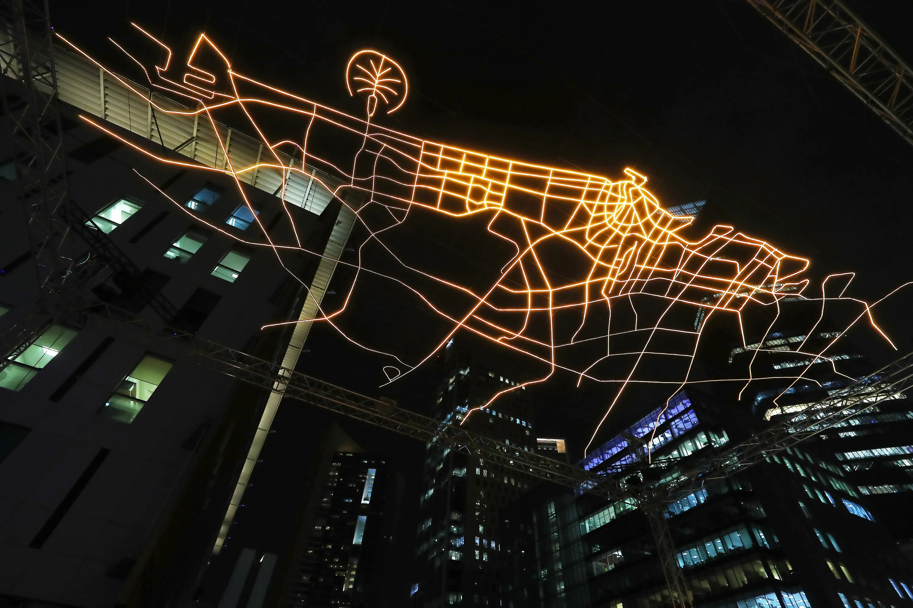 The light art installation City Gazing Dubai by VOUW studio from Netherlands on display at the DIFC Gate Avenue in Dubai on January 18, 2022. (Photo by Pawan Singh/The National)