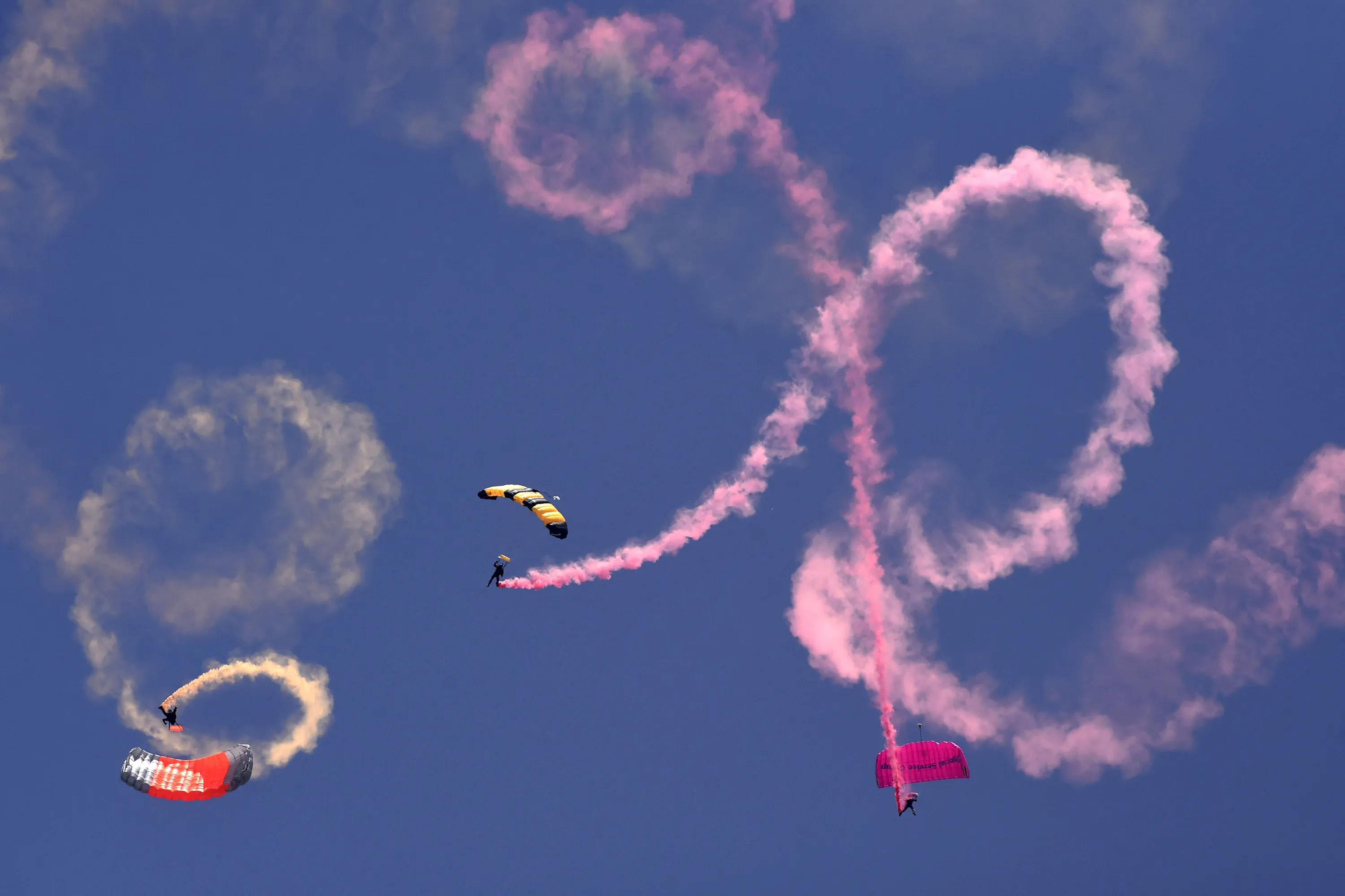 Paratroopers perform during a horse and cattle show organised by Youth Affairs Department Punjab in Lahore on March 10, 2022. (Photo by Arif Ali/AFP Photo)