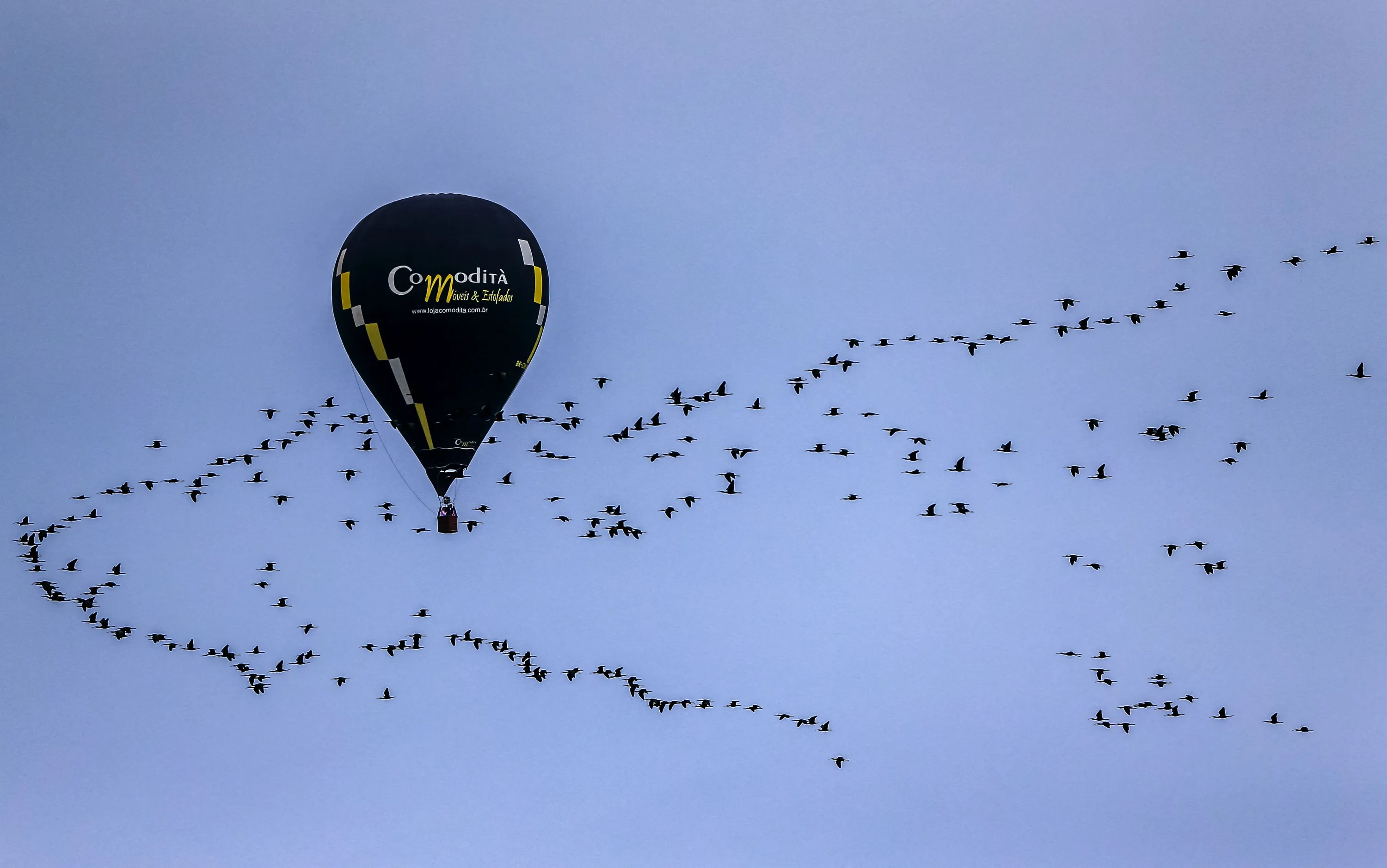 A hot air balloon flies over the city of Torres, in the south of Brazil, during the 34th Brazilian Ballooning Championship on October 17, 2021. (Photo by Silvio Avila/AFP Photo)
