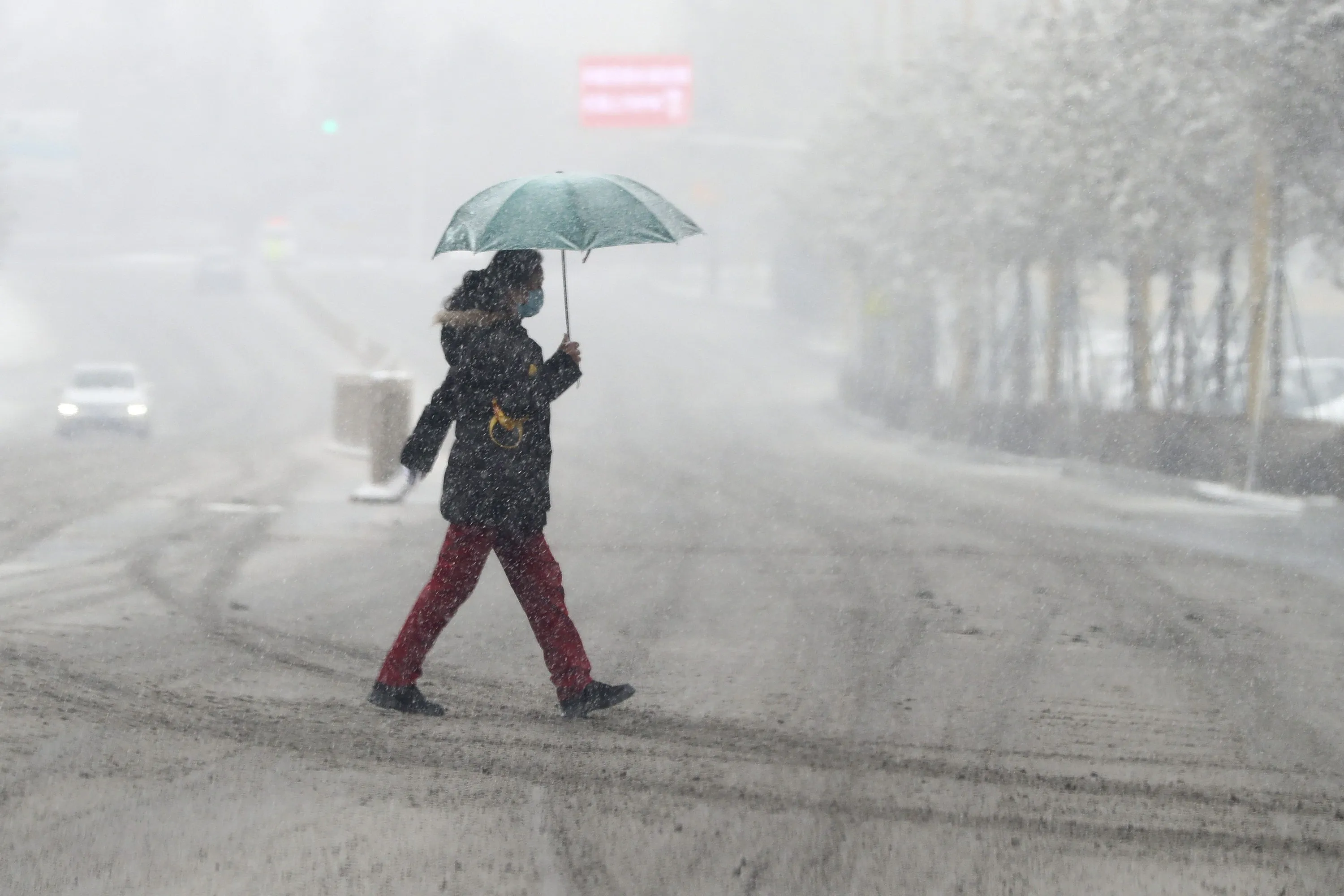 A resident walks in the snow during the COVID-19 lockdown in Changchun in northeastern China's Jilin province Saturday, March 12, 2022. (Photo by Chinatopix via AP Photo)