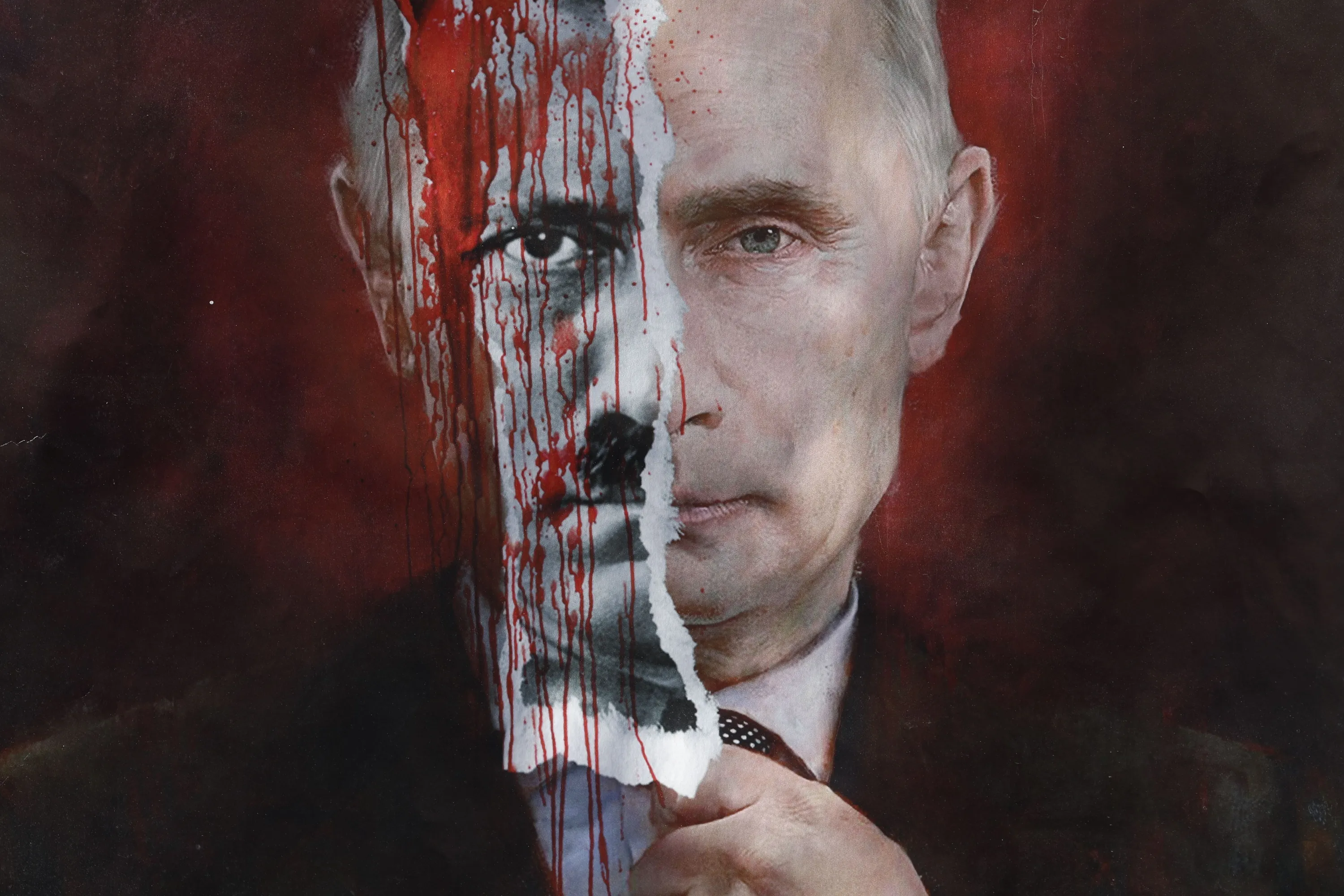 A poster with Russian President Putin with a bloody face is displayed during a protest action in front of the Russia Embassy in Riga, Latvia, 17 March 2022. The protest is planned to continue and take place every day at the Russian Embassy in Riga, until the end of the war in Ukraine. On 24 February Russian troops had entered Ukrainian territory in what the Russian president declared a “special military operation”, resulting in fighting and destruction in the country, a huge flow of refugees, and multiple sanctions against Russia. (Photo by Toms Kalnins/EPA/EFE)