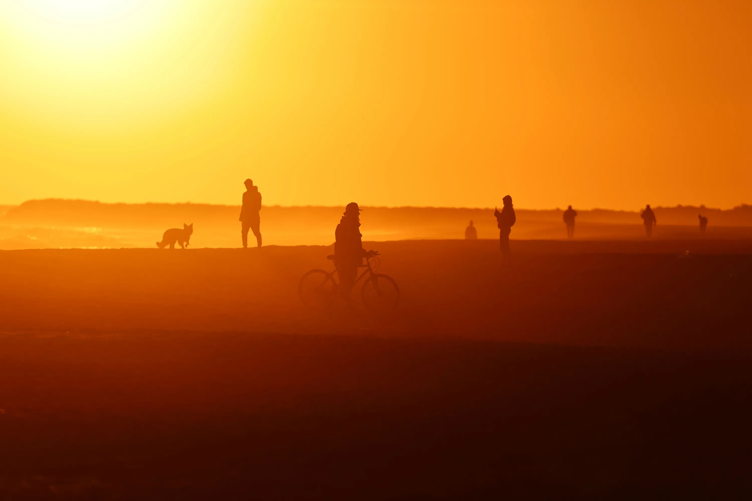 Tourists and locals enjoy walking in the winter sun during a sunset at the Roberta beach, amid the outbreak of the coronavirus disease (COVID-19), as the Spanish government considers the sixth wave of COVID-19 to be coming to an end, in Barcelona, Spain on February 1, 2022. (Photo by Nacho Doce/Reuters)