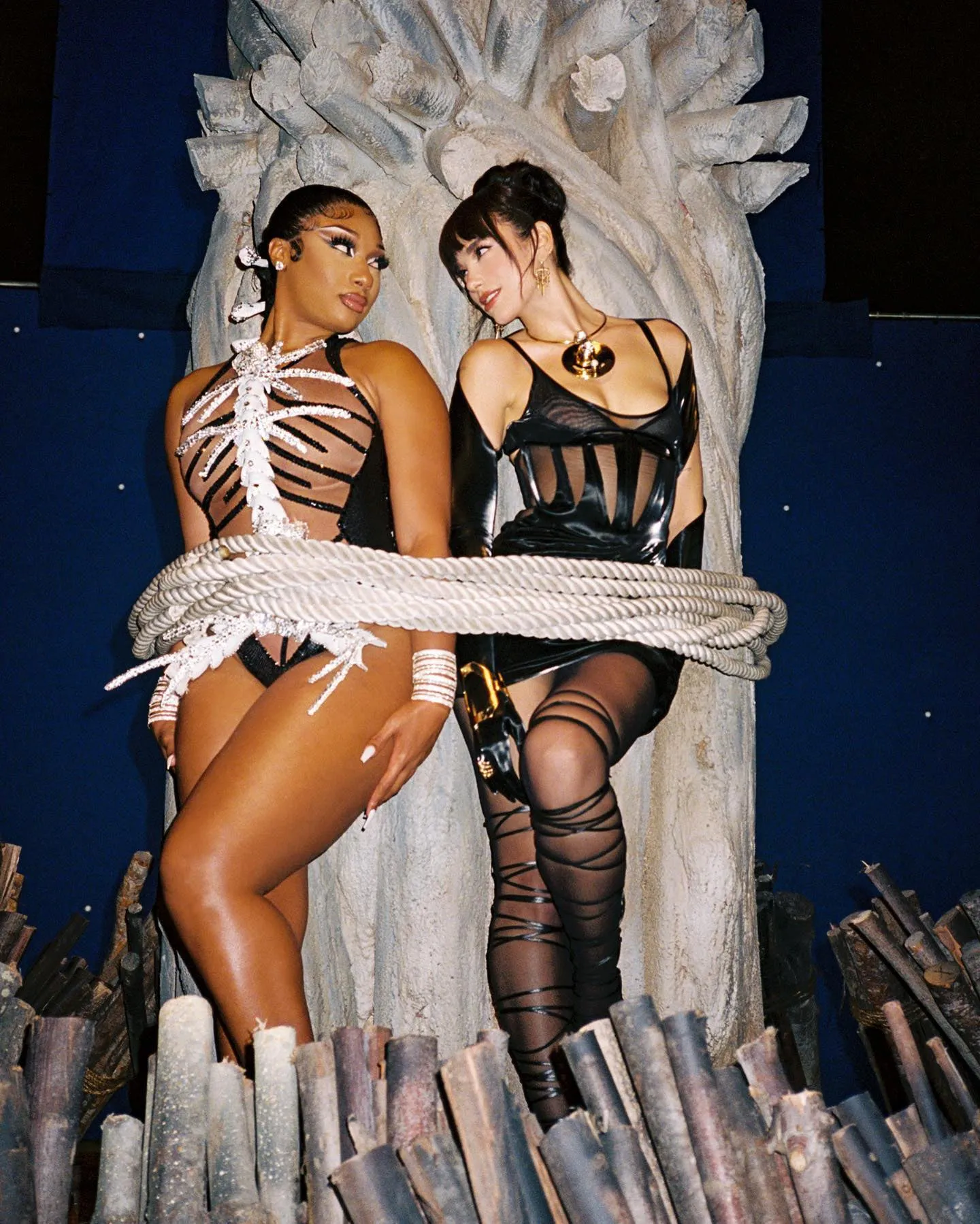 American rapper Megan Jovon Ruth Pete, known professionally as Megan Thee Stallion and English singer and songwriter Dua Lipa share stills from their new music video in the second decade of March 2022. (Photo by Instagram)