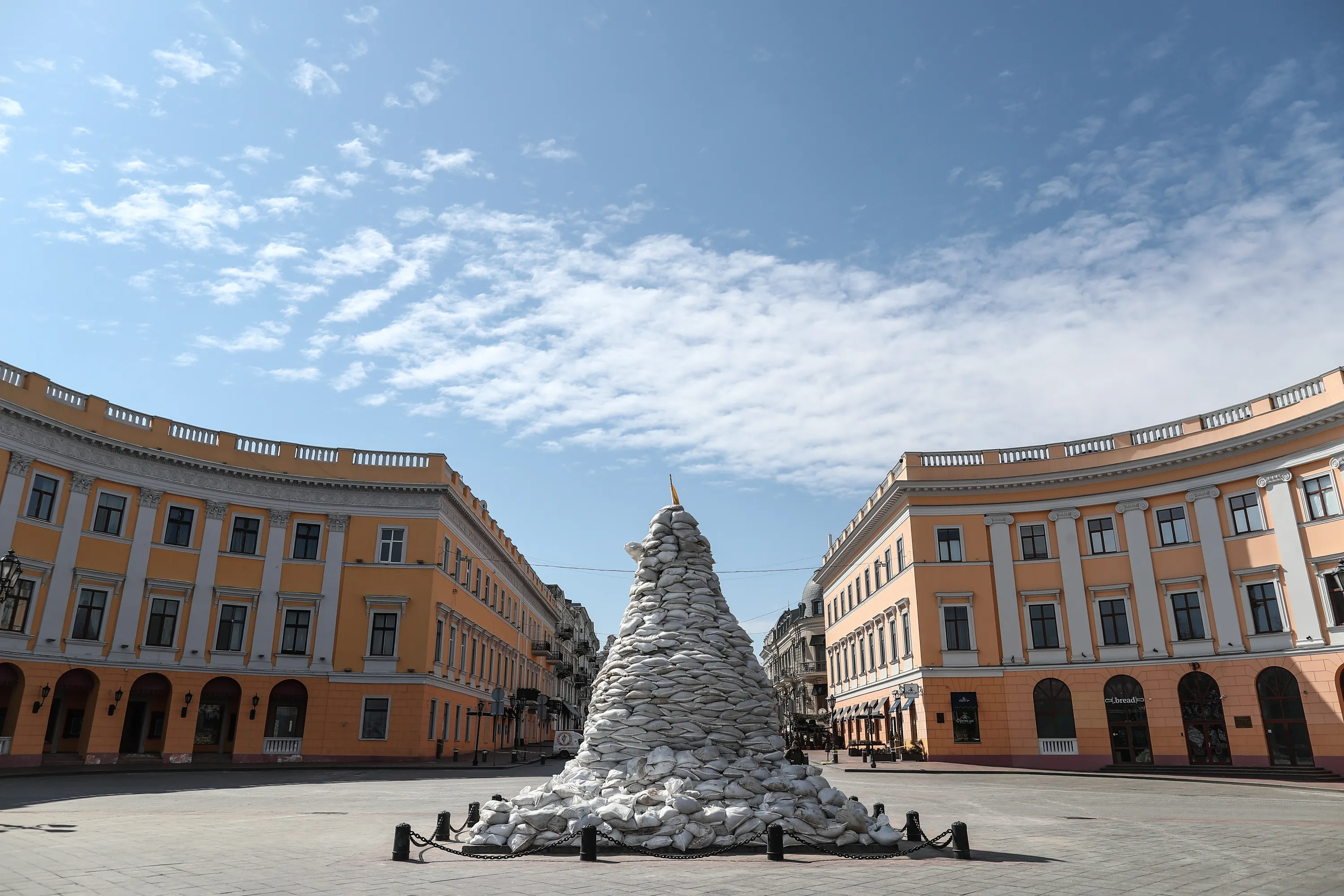 epa09840816 General view of the monument of the Duke of Richelieu, in south Ukrainian city of Odesa, in Ukraine, 21 March 2022. Russian troops entered Ukraine on 24 February prompting the country's president to declare martial law and triggering a series of announcements by Western countries to impose severe economic sanctions on Russia. EPA/SEDAT SUNA