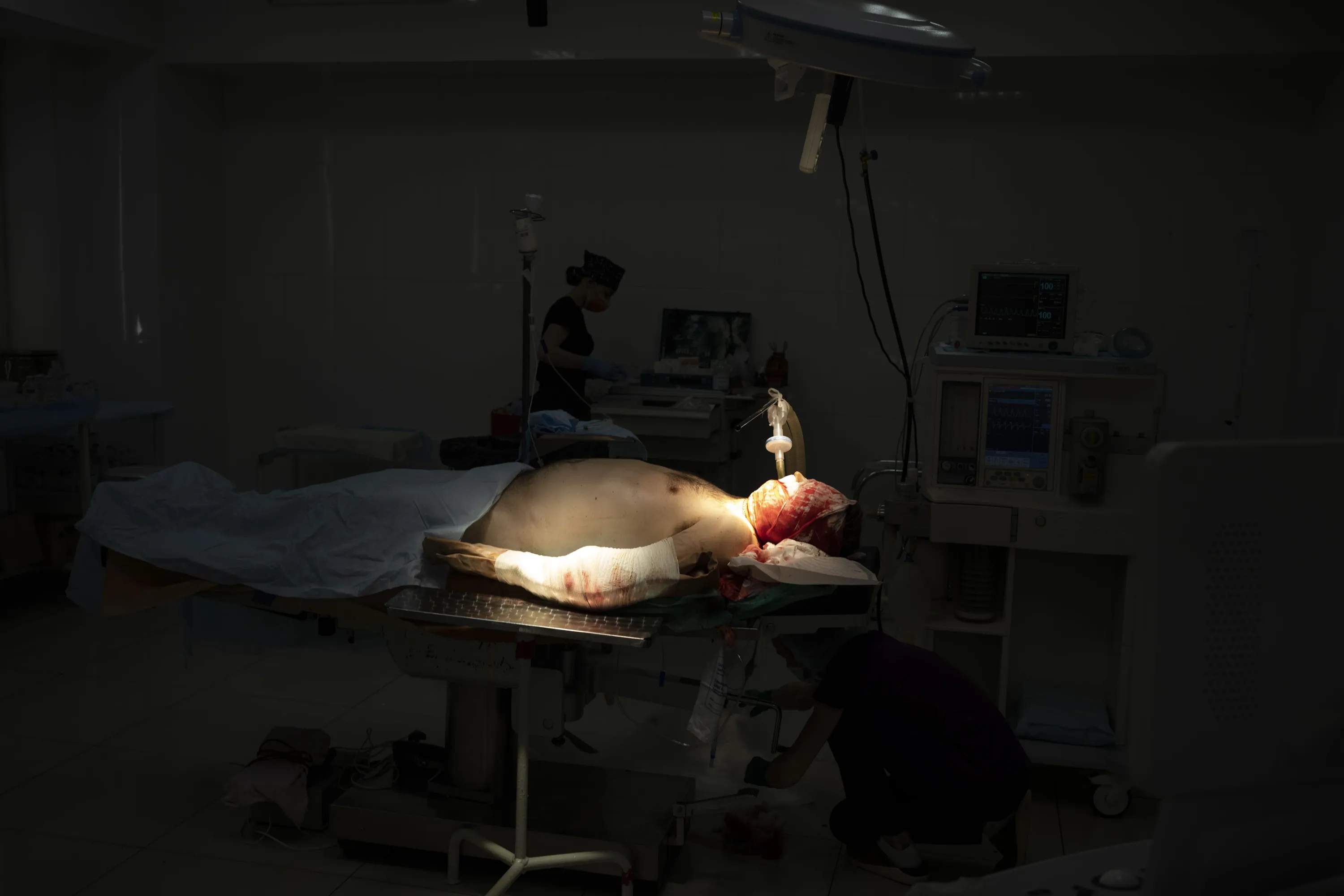 A Ukrainian soldier lays on the operating table before surgery after being injured as the Russian attack continues in Kharkiv, Ukraine, Friday, March 25, 2022. (Photo by Felipe Dana/AP Photo)