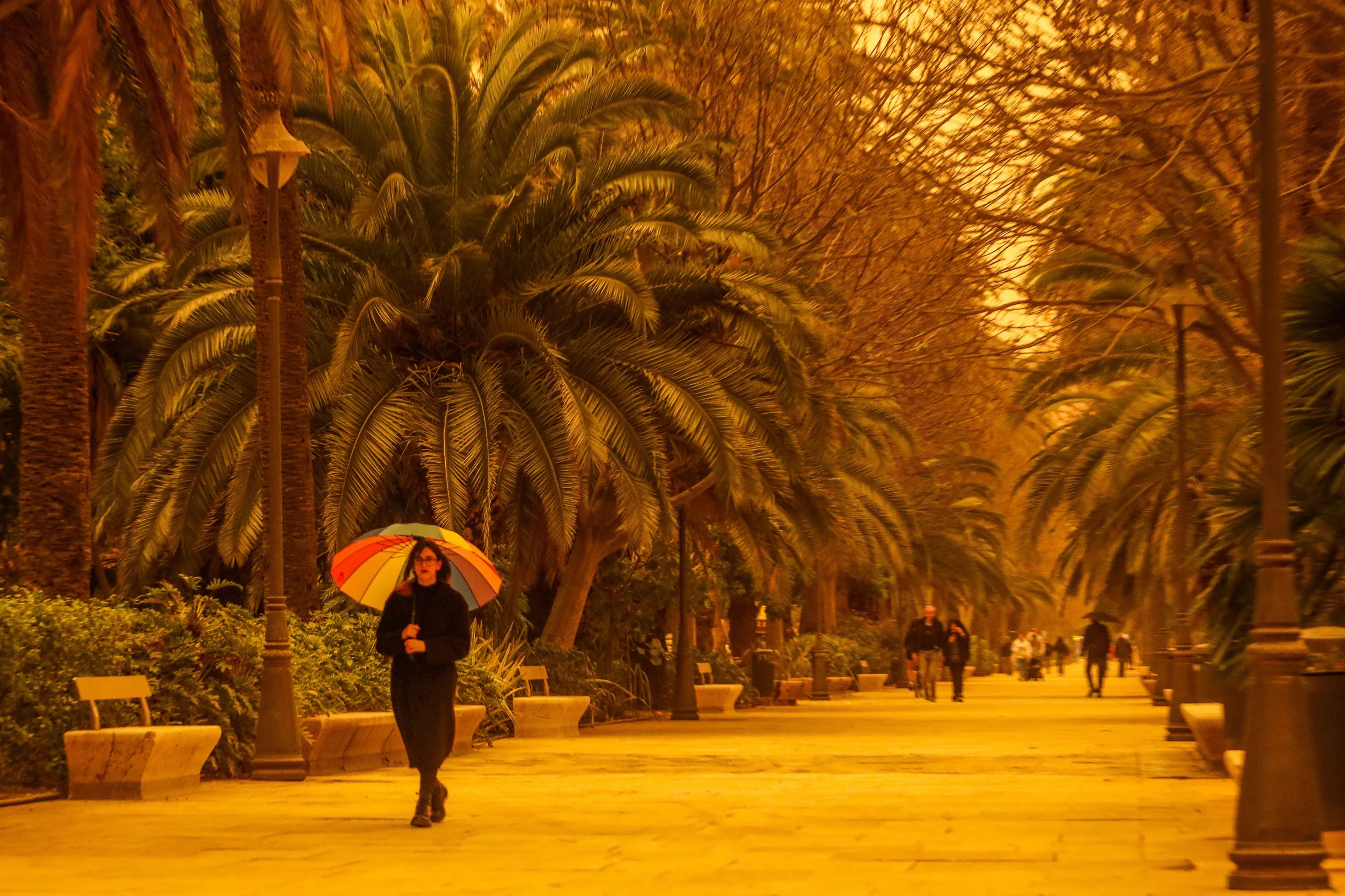A dust cloud turns the sky sepia in Málaga, Spain on March 24, 2022. (Photo by Lorenzo Carnero/ZUMA Press Wire/Rex Features/Shutterstock)
