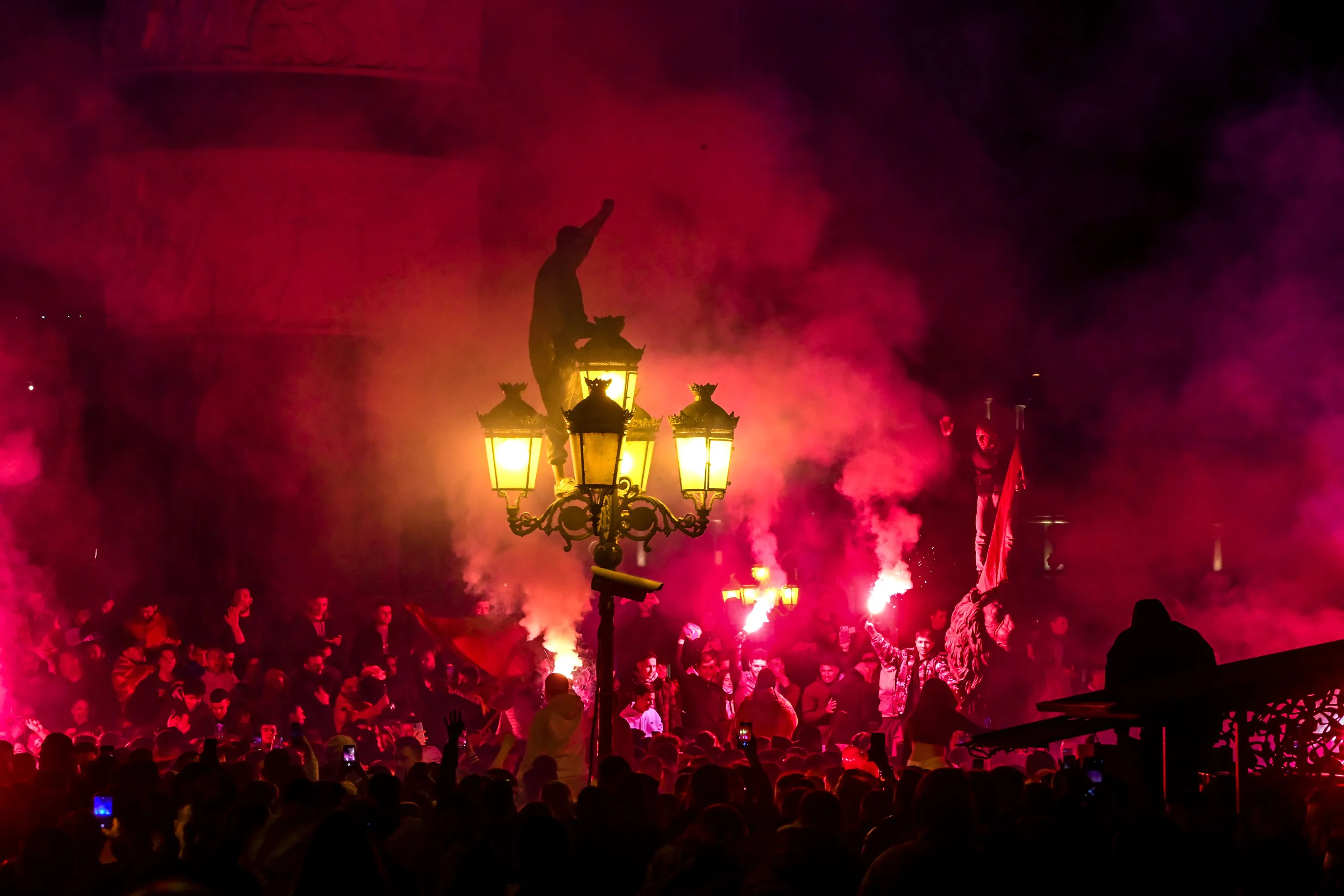 People waving North Macedonian flags and flares celebrate in Skopje, Republic of North Macedonia, 24 March 2022. North Macedonia stuns Italy after winning the FIFA World Cup Qatar 2022 play-off qualifying soccer match between Italy and North Macedonia in Palermo, Italy. (Photo by Georgi Licovski/EPA/EFE)