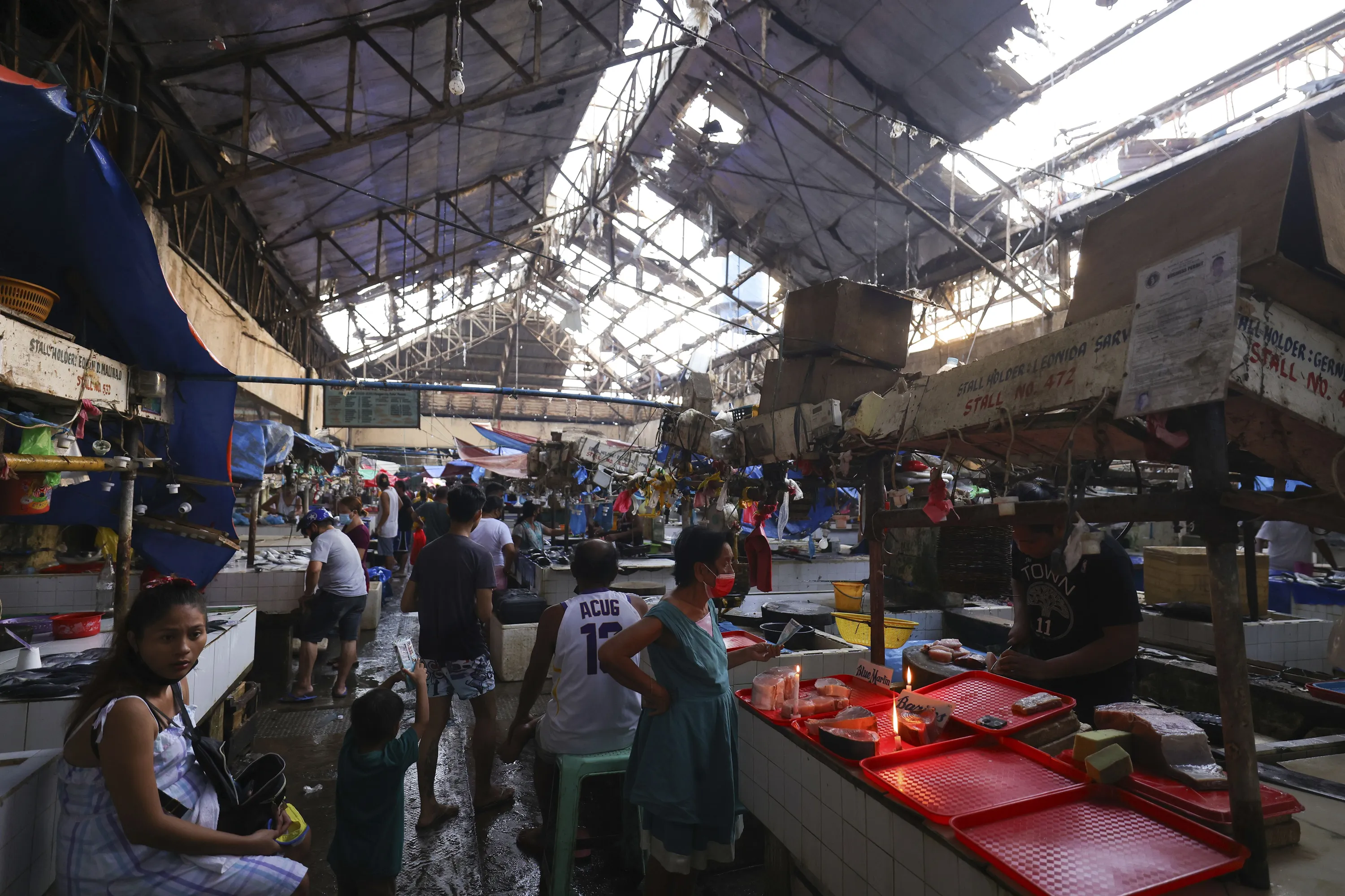 Residents buy at a damaged public market due to Typhoon Rai in Surigao city, Surigao del Norte, southern Philippines on Sunday December 19, 2021. The death toll in the strongest typhoon to batter the Philippines this year continues to rise and the governor of an island province especially hard-hit by Typhoon Rai said there may be even greater devastation that has yet to be reported. (Photo by Jilson Tiu/AP Photo)