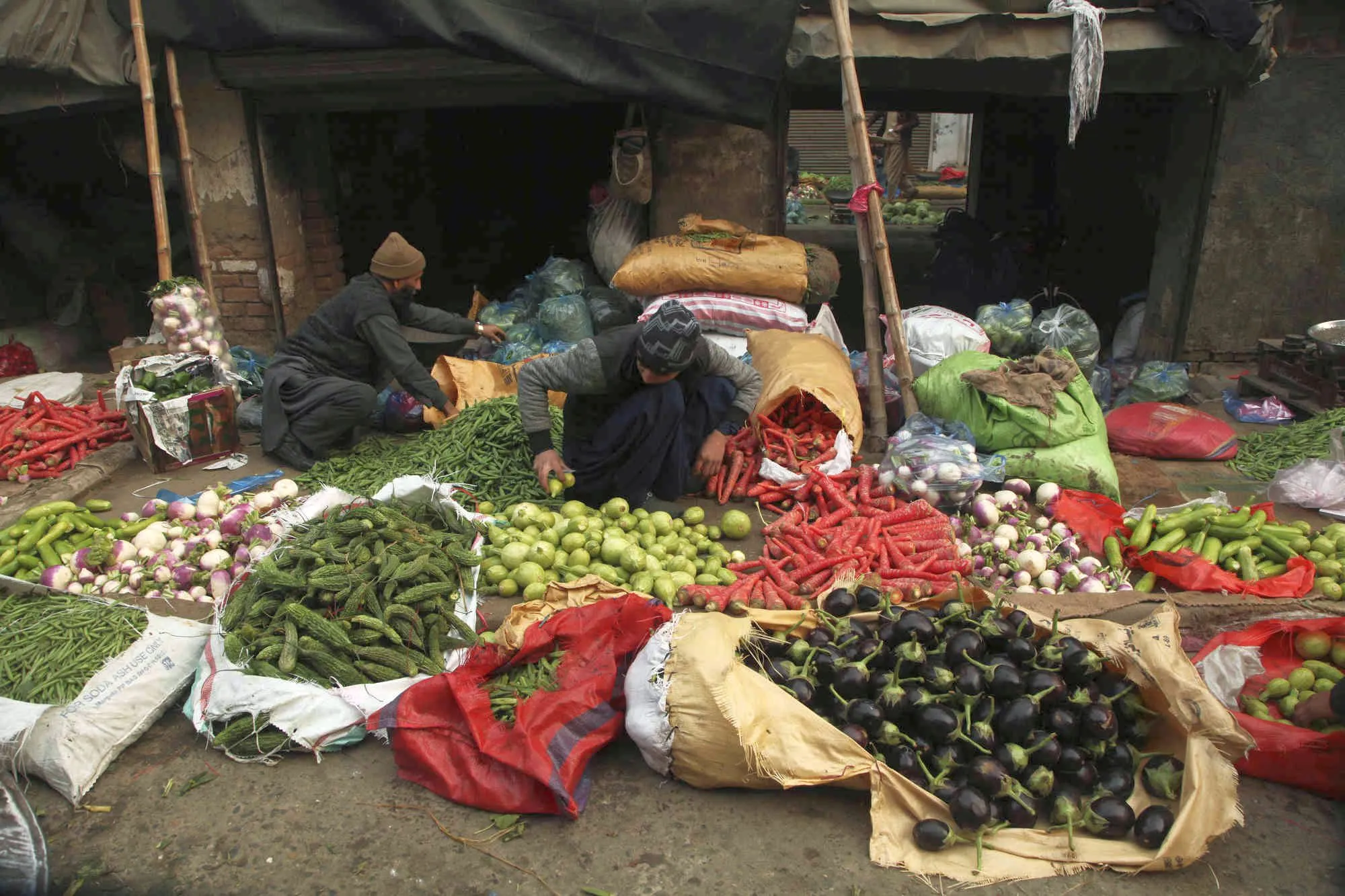 A Pakistani vegetable seller waits for customers at a market in Peshawar, Pakistan, Wednesday, December 22, 2021. (Photo by Mohammad Sajjad/AP Photo)