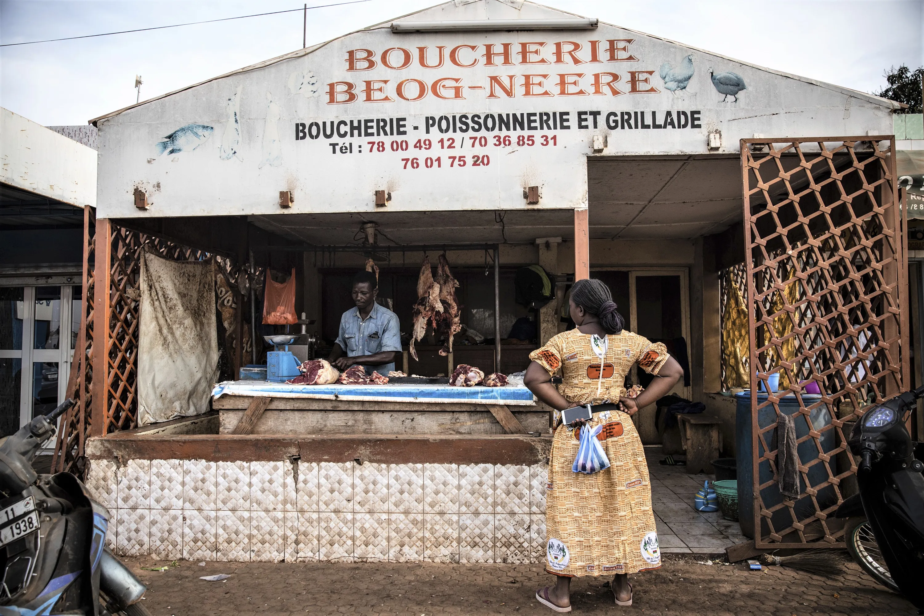A woman waits for her order at a Butcher shop in the Gounghin district of Ouagadougou Wednesday January 26, 2022. (Photo by Sophie Garcia/AP Photo)