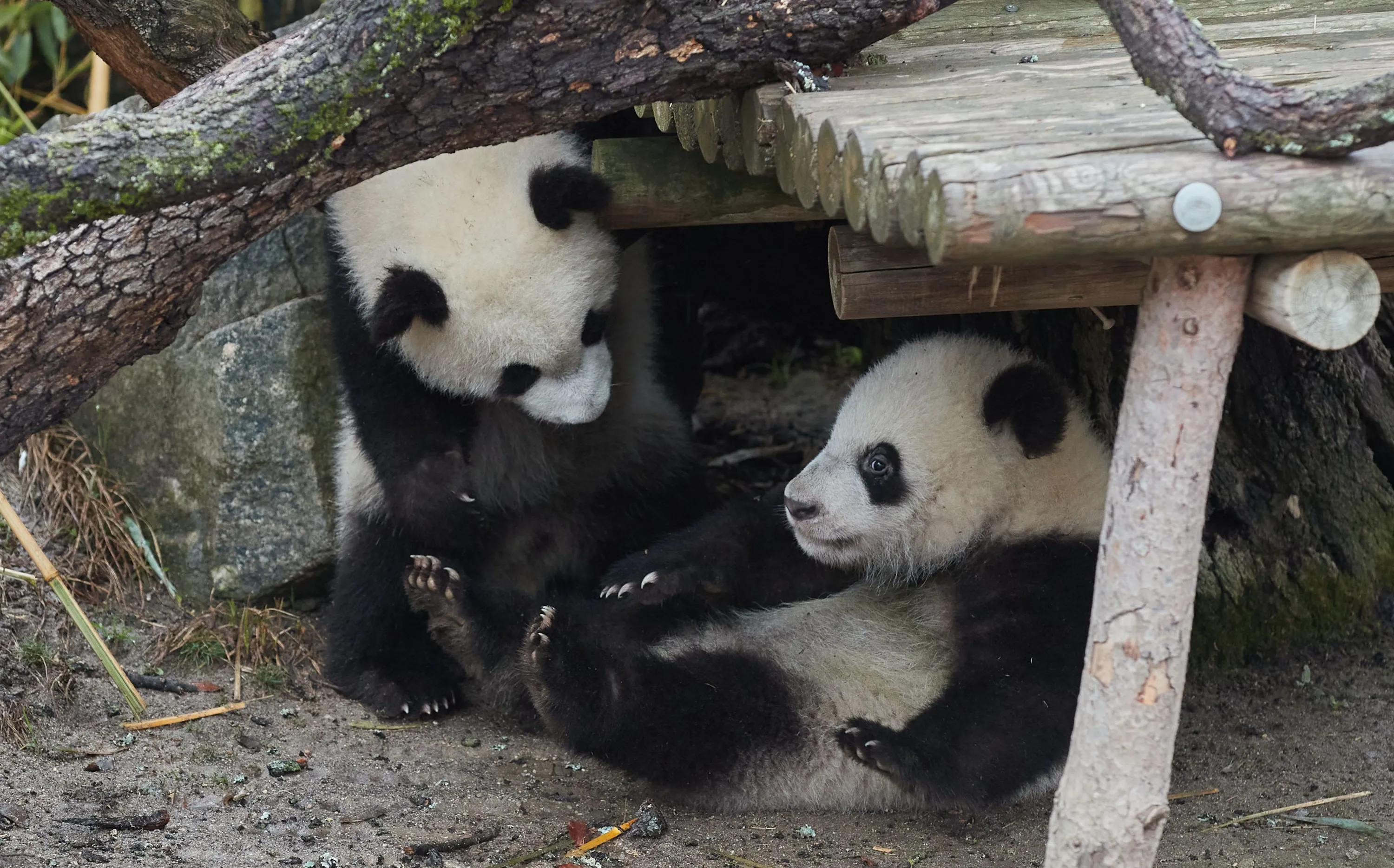 Giant panda twins are seen at Madrid Zoo Aquarium in Madrid, Spain, on March 21, 2022. Giant panda twins “You You” and “Jiu Jiu” born in Madrid Zoo Aquarium made their first public appearance here on Monday. (Photo by Xinhua News Agency/Rex Features/Shutterstock)