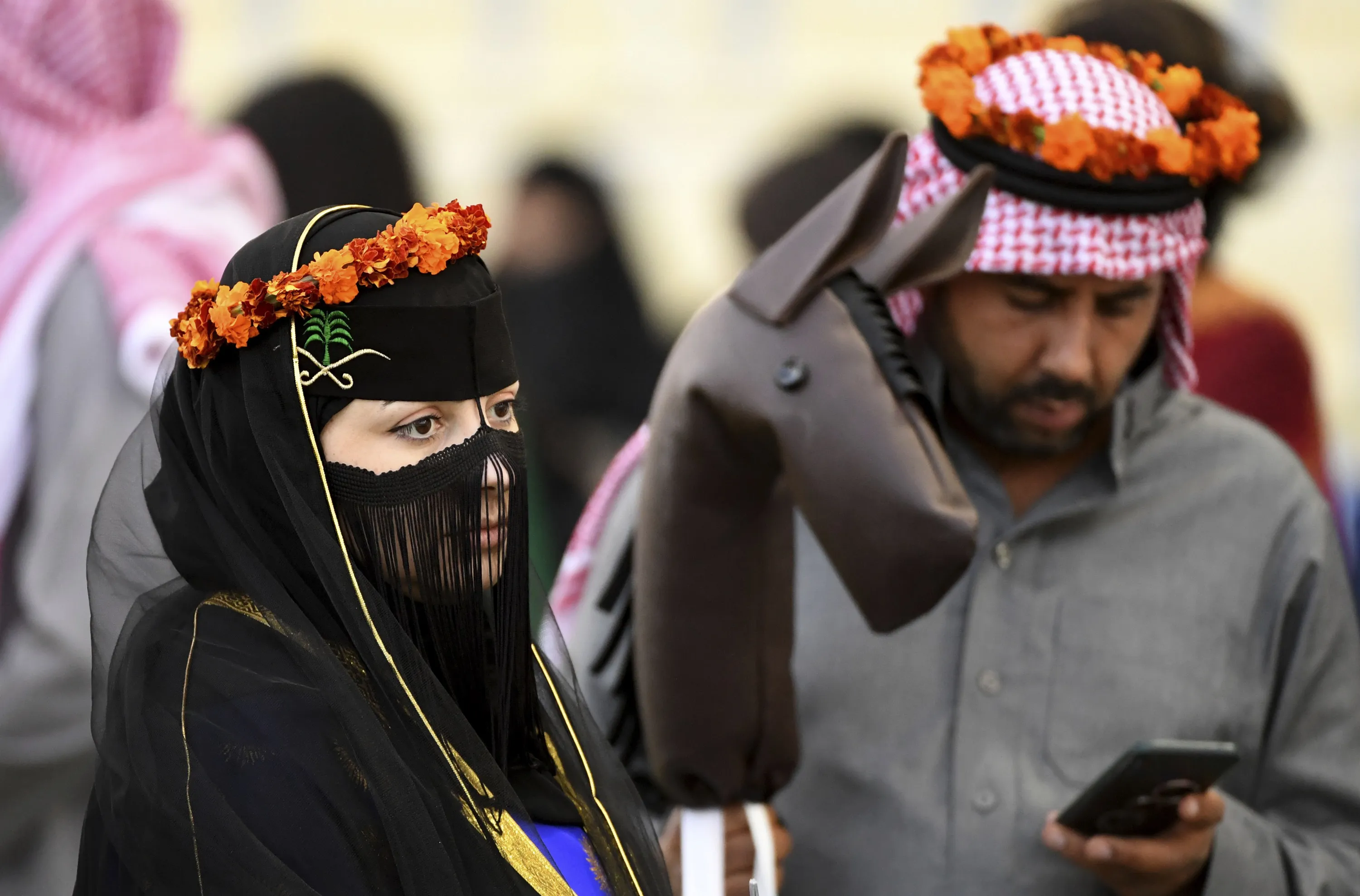 A racegoer watches horses in the parade ring at the King Abdulaziz racetrack in Riyadh, Saudi Arabia, Friday, February 25, 2022. (Photo by Martin Dokoupil/AP Photo)