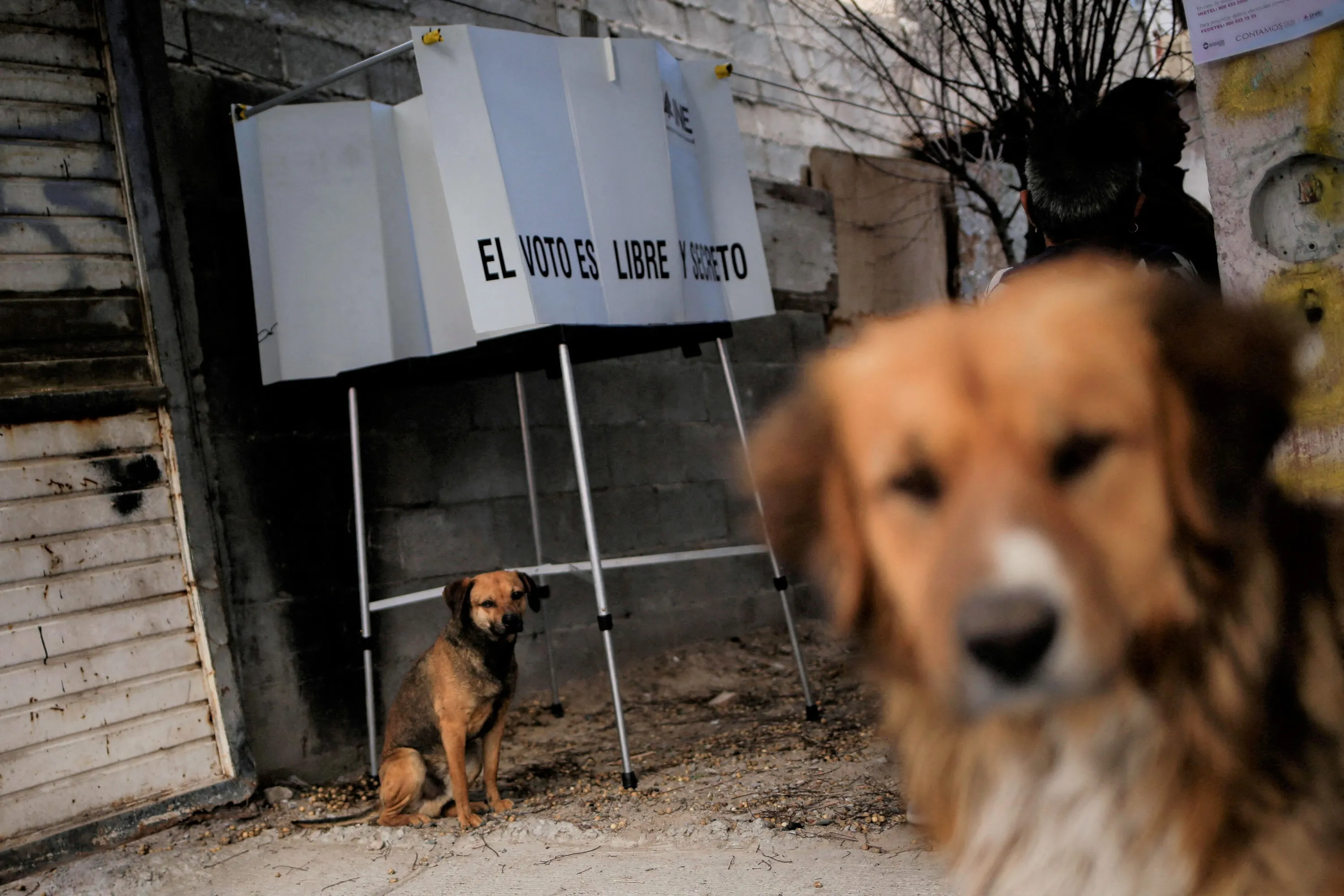 Dogs stand by a ballot box at a polling station during a referendum on whether President Andres Manuel Lopez Obrador should continue in office, in Ciudad Juarez, Mexico on April 10, 2022. (Photo by Jose Luis Gonzalez/Reuters)