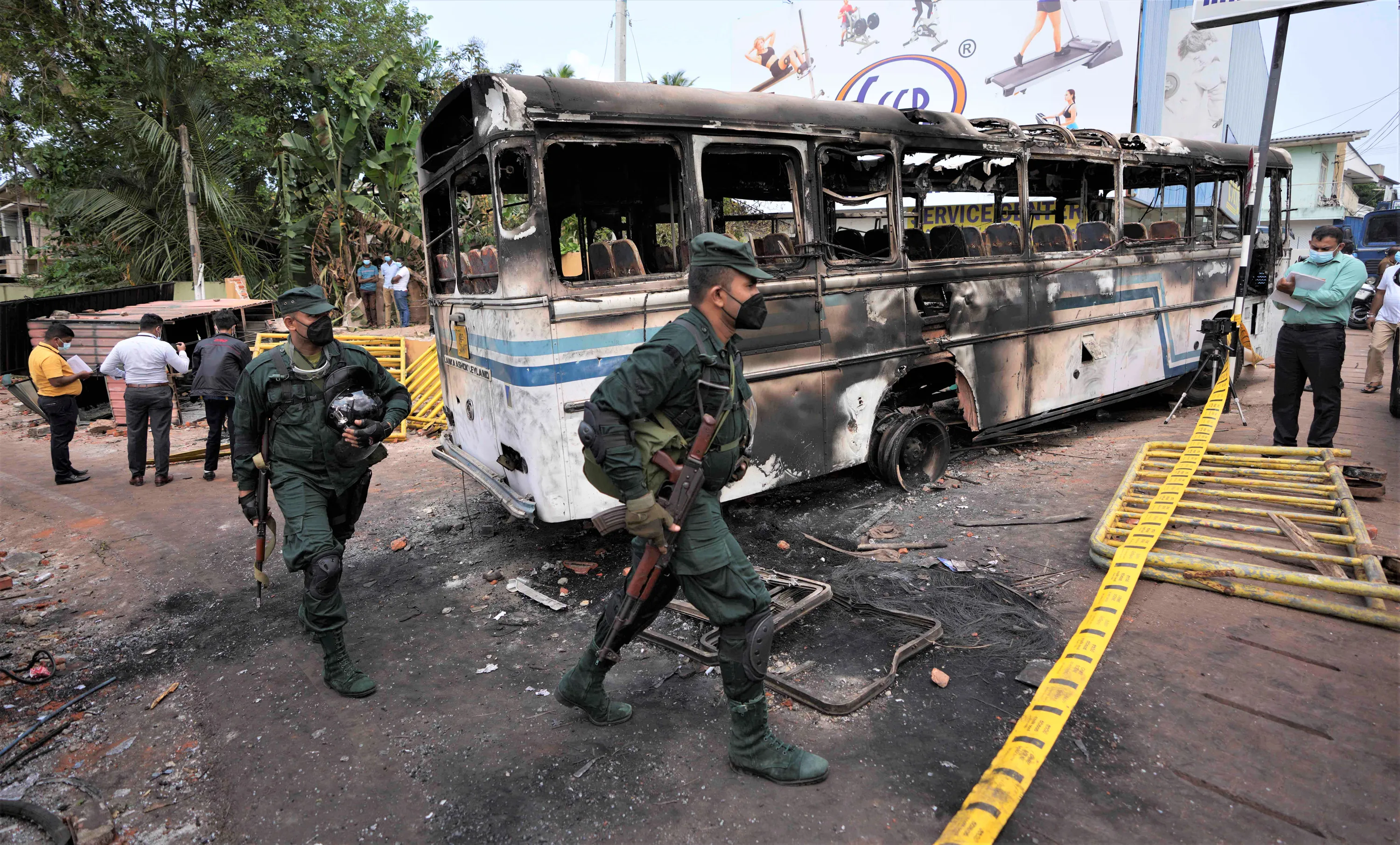 Sri Lankan army soldiers arrive at the vandalised neighbourhood of Sri Lankan President Gotabaya Rajapksa's private residence after overnight clashes in Colombo, Sri Lanka, Friday, April 1, 2022. Dozens of people were arrested in Sri Lanka following protests near the president's home demanding that he resign amid the country's worst economic crisis in memory, police said Friday. (Photo by Eranga Jayawardena/AP Photo)