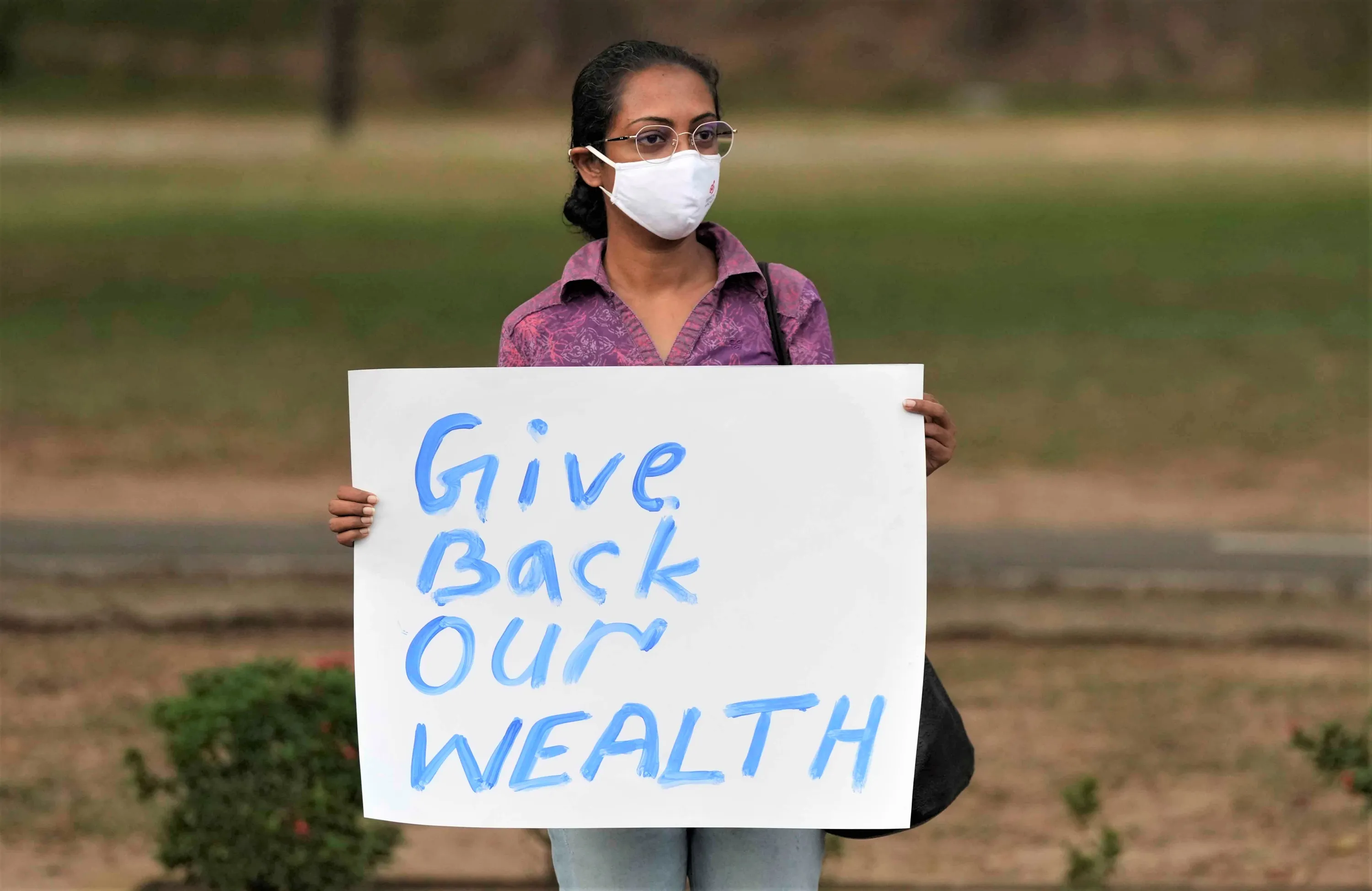 A Sri Lankan woman participates in a protest against the economic crisis, before the beginning of curfew in Colombo, Sri Lanka, Saturday, April 2, 2022. Sri Lanka imposed a countrywide curfew starting Saturday evening until Monday morning, in addition to a state of emergency declared by the president, in an attempt to prevent more unrest after protesters took to the streets blaming the government for the worsening economic crisis. (Photo by Eranga Jayawardena/AP Photo)
