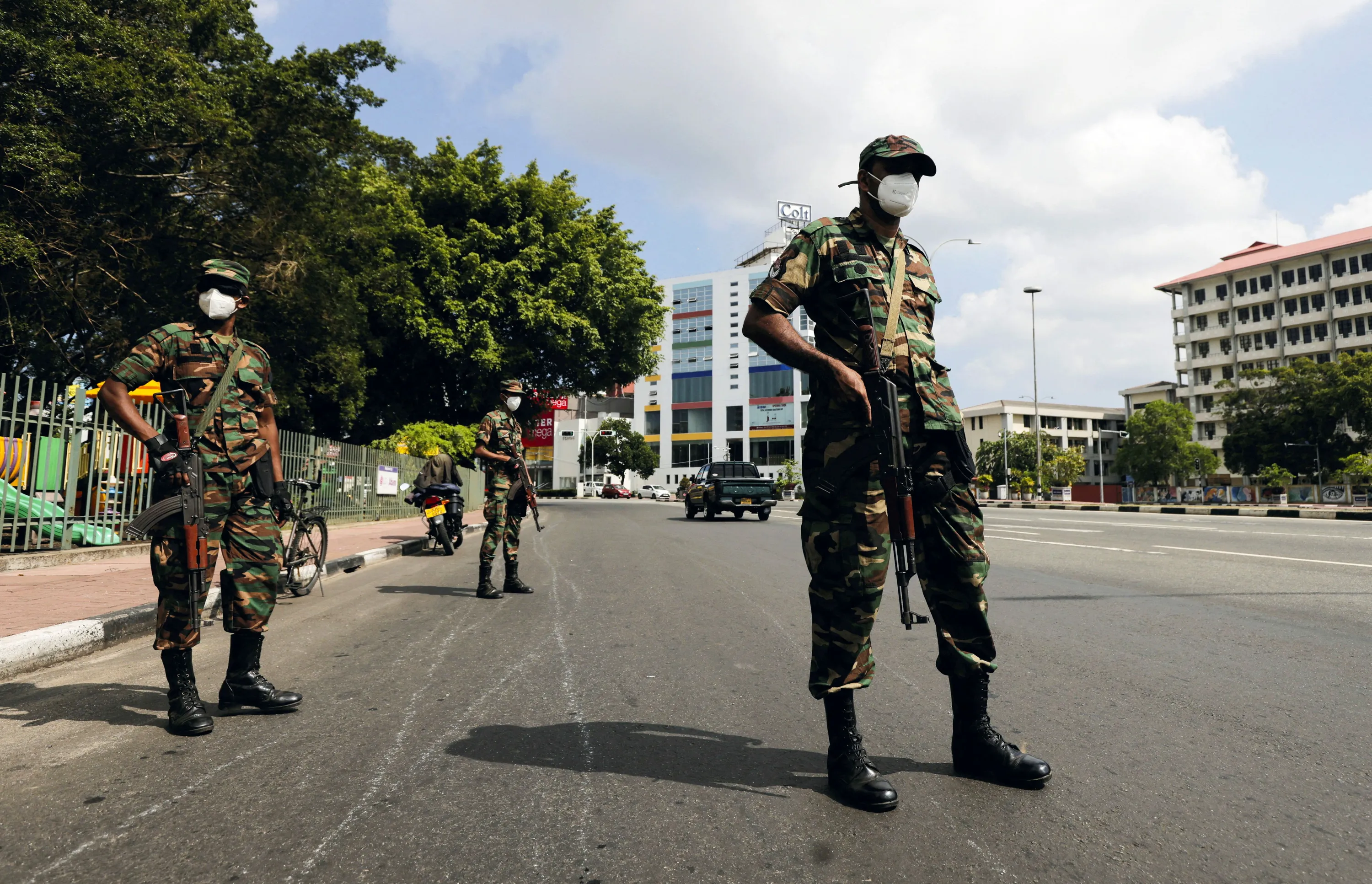 Sri Lankan army soldiers stand guard at a checkpoint after the government imposed a curfew following a clash between police and protestors near Sri Lankan President Gotabaya Rajapaksa's residence during a protest last Thursday, amid the country's economic crisis, in Colombo, Sri Lanka on April 3, 2022. (Photo by Dinuka Liyanawatte/Reuters)