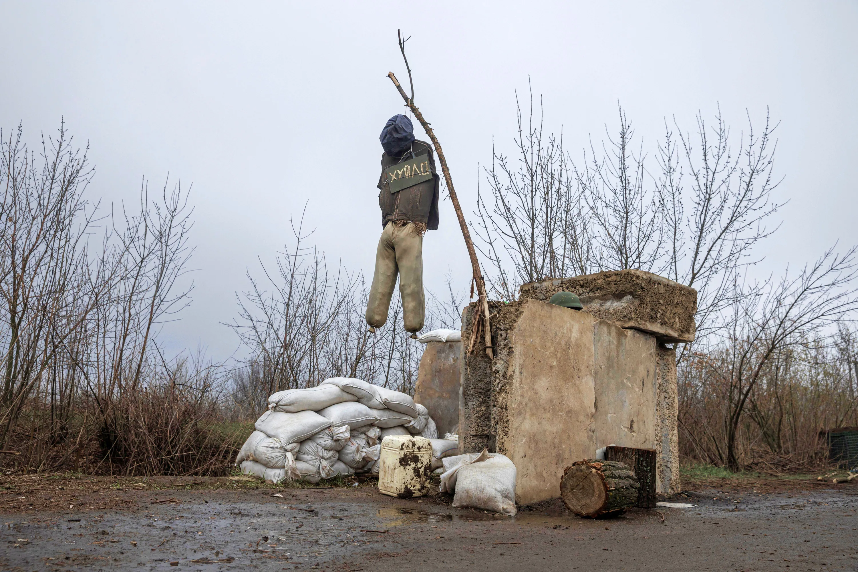 A dummy dressed as a Russian fighter hangs outside the village of Barvinkove, Kharkiv region, as Russia's invasion on Ukraine continues, in Ukraine, April 12, 2022. (Photo by Marko Djurica/Reuters)