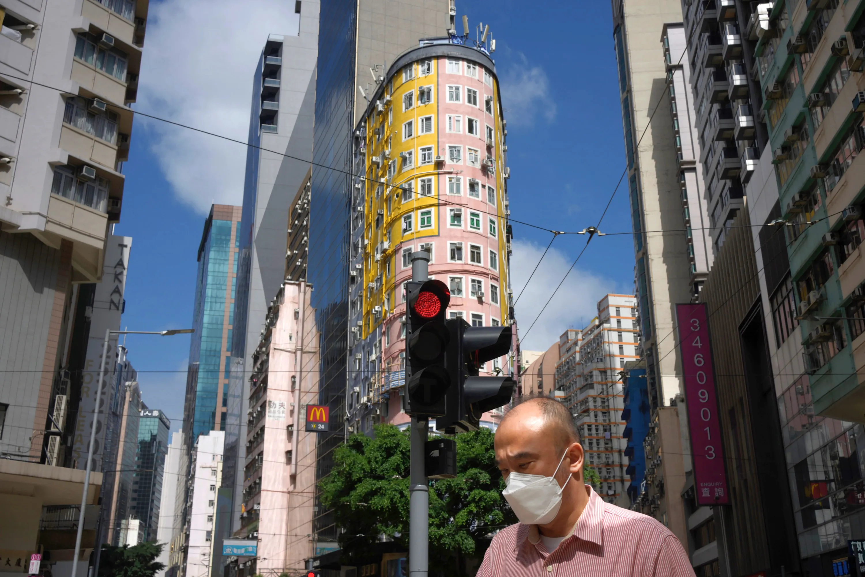 A man wearing face mask to help curb the spread of the coronavirus walks along the streets of Hong Kong, Thursday, March 31, 2022. (Photo by Vincent Yu/AP Photo)