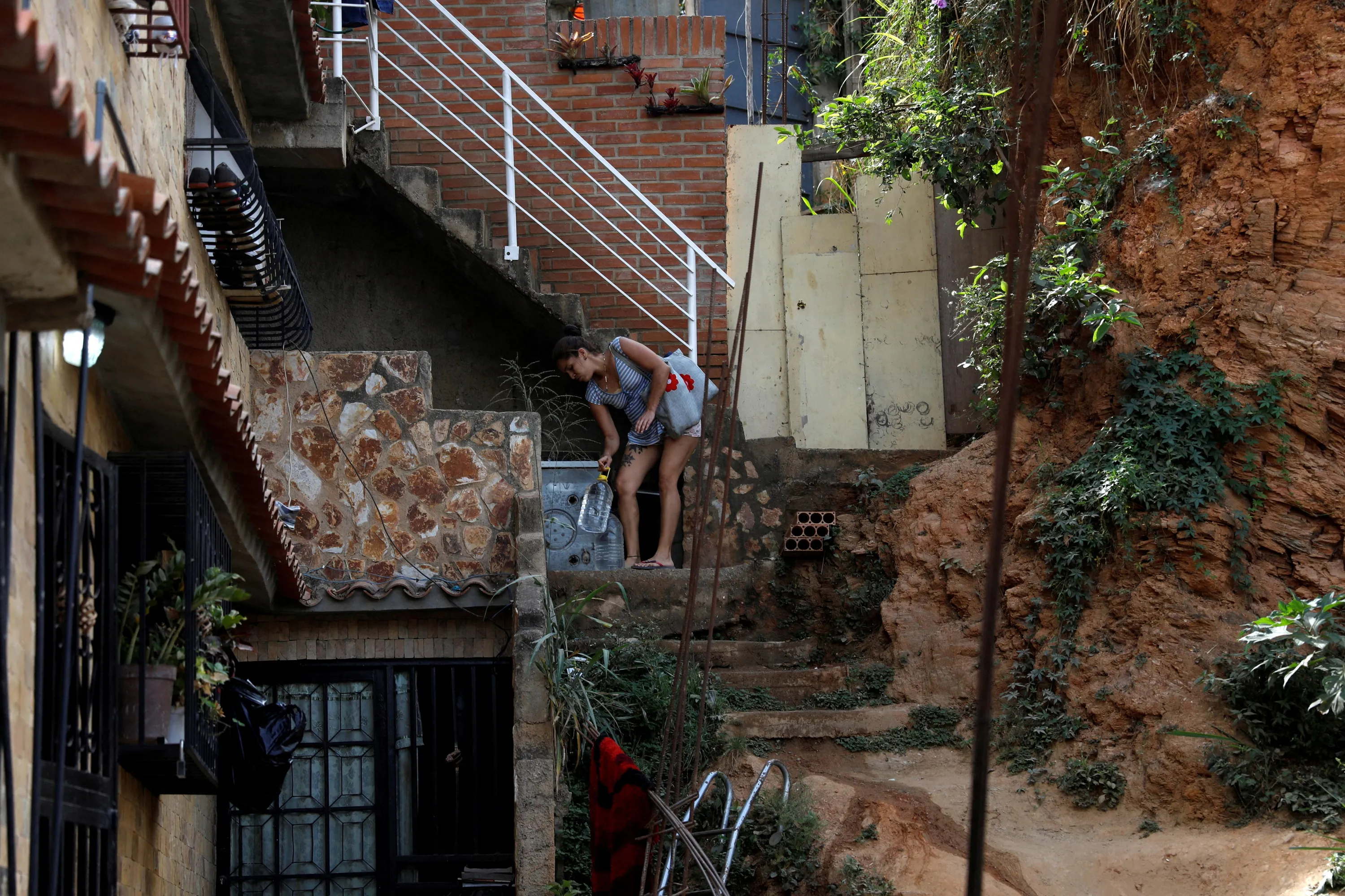 A pregnant women carries bottles of water from a natural creek amid water shortages across the country, in Caracas, Venezuela on March 22, 2022. (Photo by Leonardo Fernandez Viloria/Reuters)