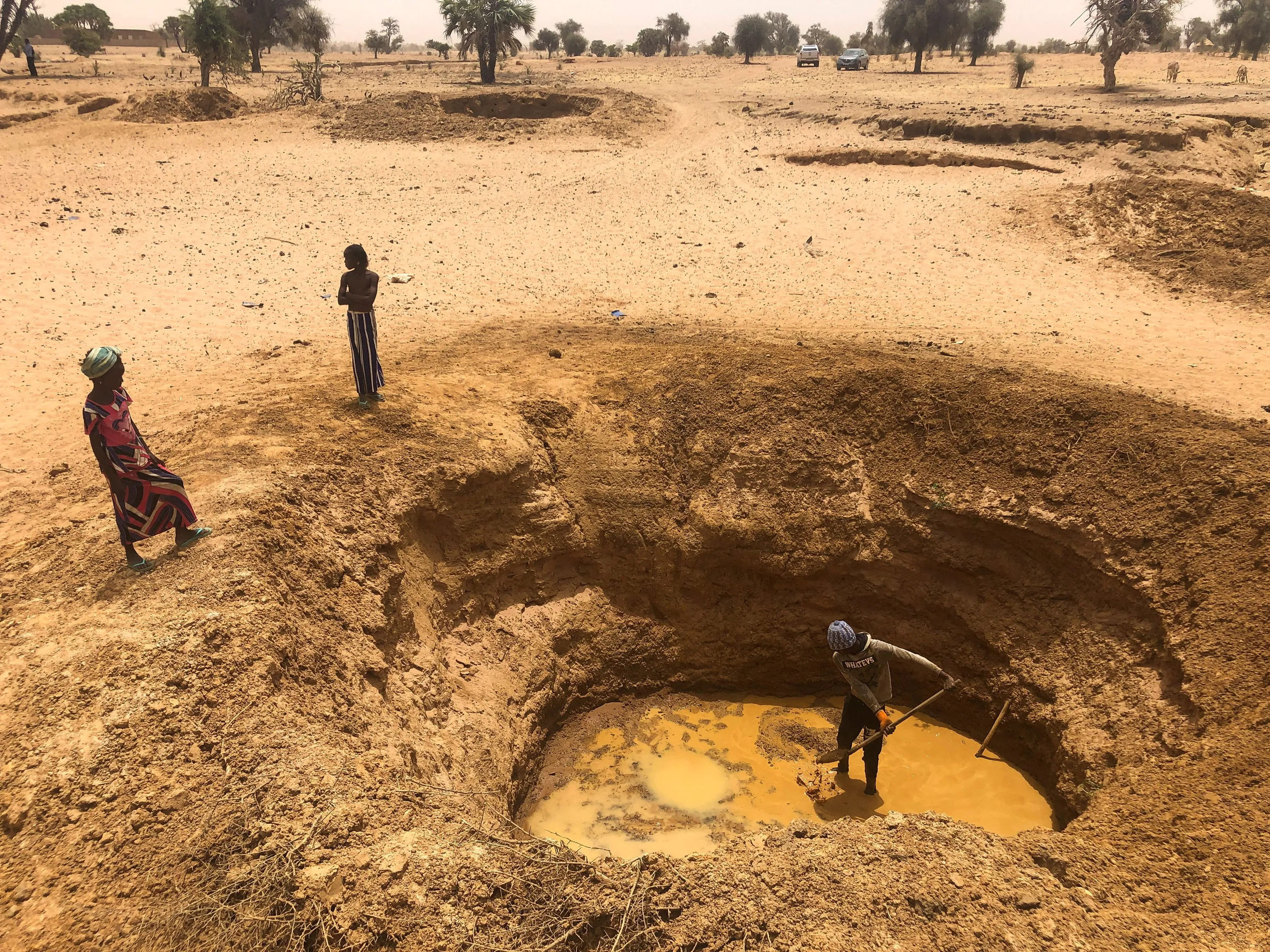 A man digs a pit to obtain water, in a dry river bed, near the village of Tata Bathily in Matam, Senegal on March 30, 2022. (Photo by Edward McAllister/Reuters)