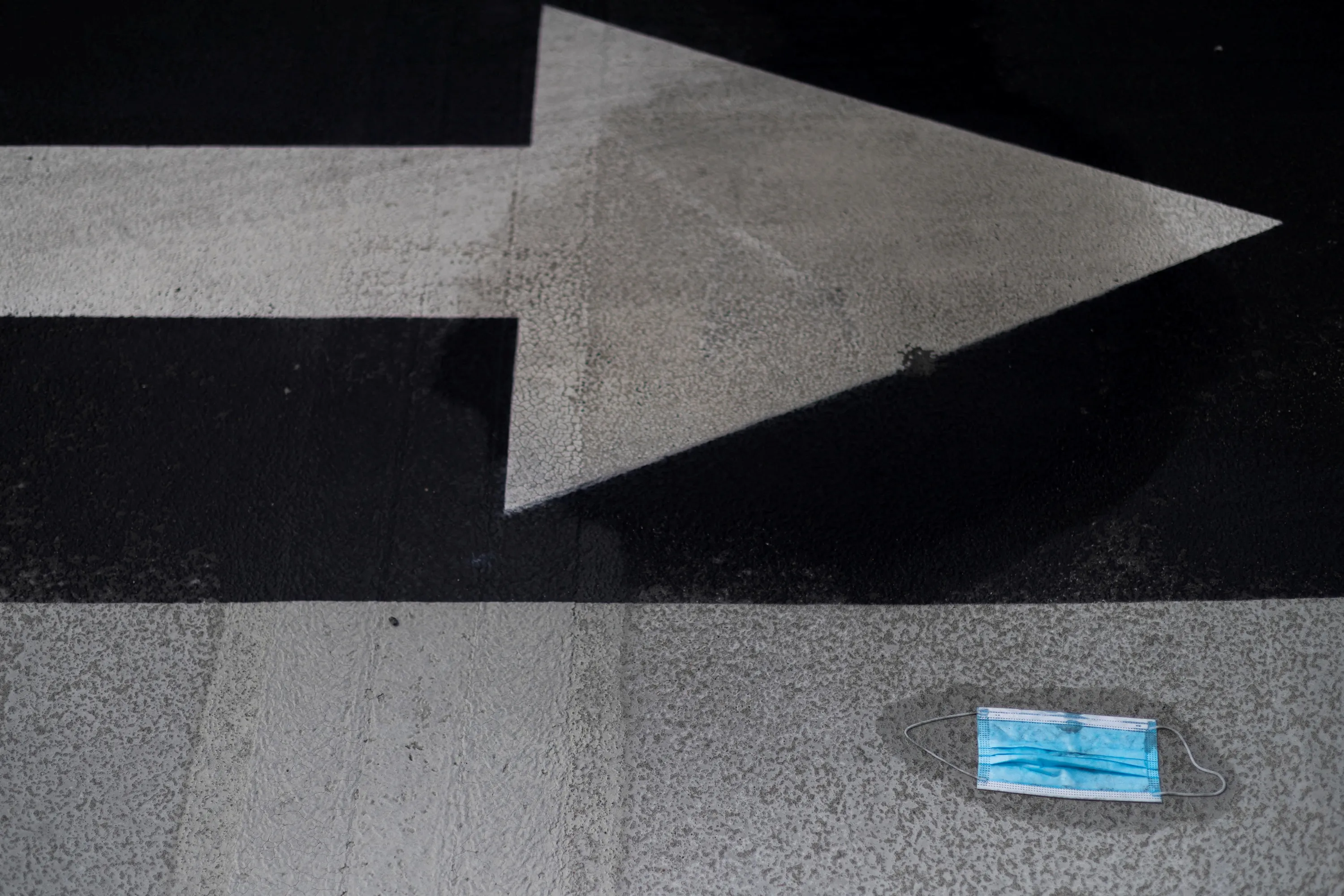 A face mask is seen on the ground at a parking lot of the San Francisco international airport, after a federal judge in Florida struck down the CDC's public transportation masking order due to the coronavirus disease (COVID-19) pandemic, in San Francisco, California US., April 19, 2022. (Photo by Carlos Barria/Reuters)