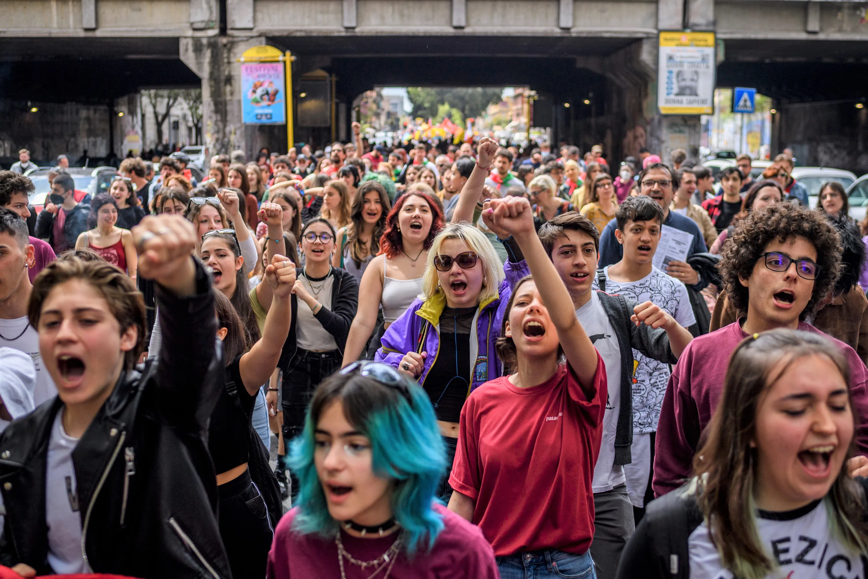 People take part in a demonstration organized by ANPI (National Association of the Italian Partisans) as part of the celebration for the 77th anniversary of the Liberation of Italy, on April 25, 2022 in Rome, Italy. The anniversary of the Liberation of Italy is a public holiday celebrated annually in Italy to commemorate the end the Second World War and the end of the Nazi occupation of the country. (Photo by Antonio Masiello/Getty Images)