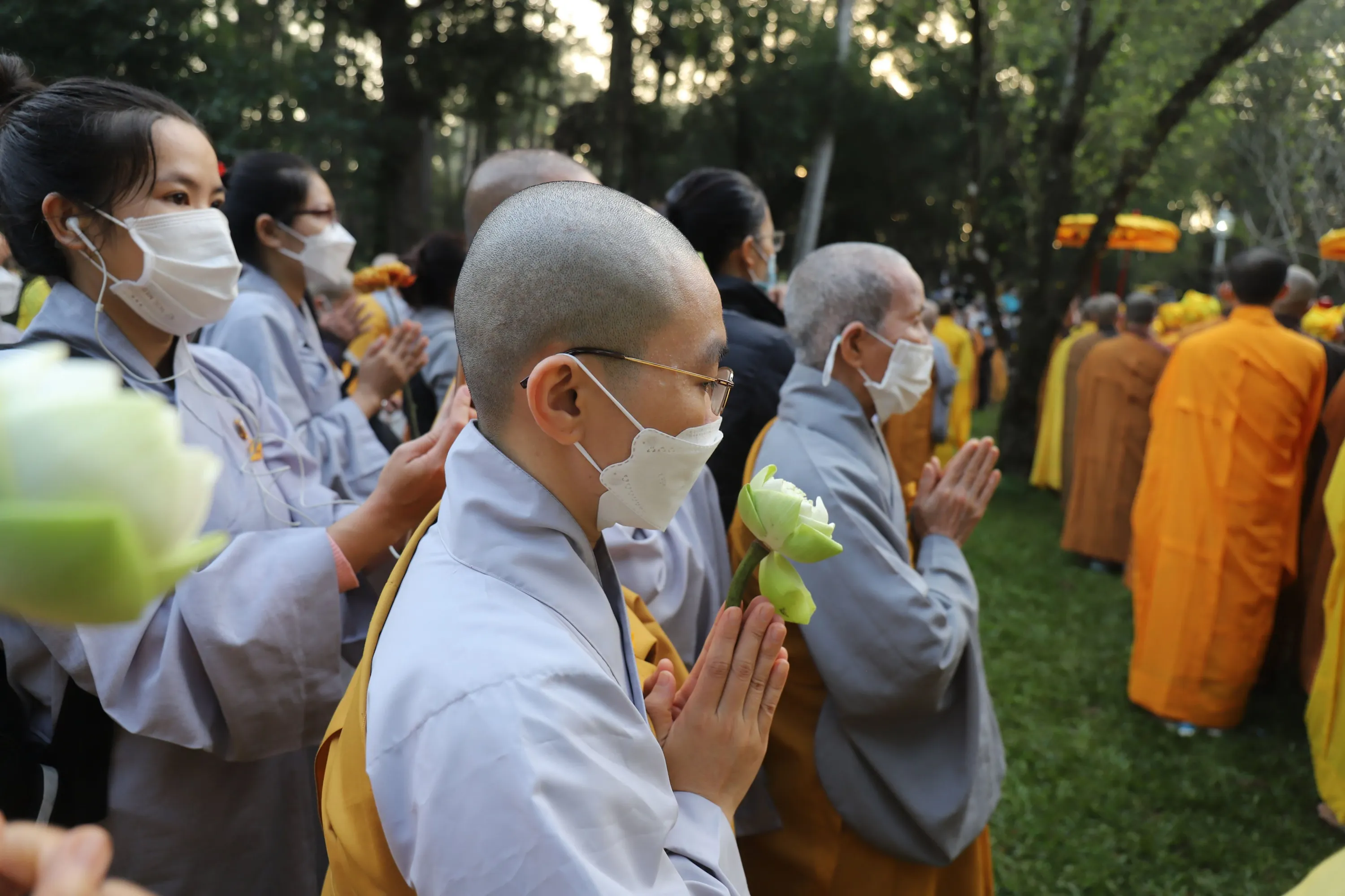 Monks and Thich Nhat Hanh followers pray during the funeral of the Vietnamese Buddhist monk in Hue, Vietnam Saturday, January 29, 2022. (Photo by Thanh Vo/AP Photo)