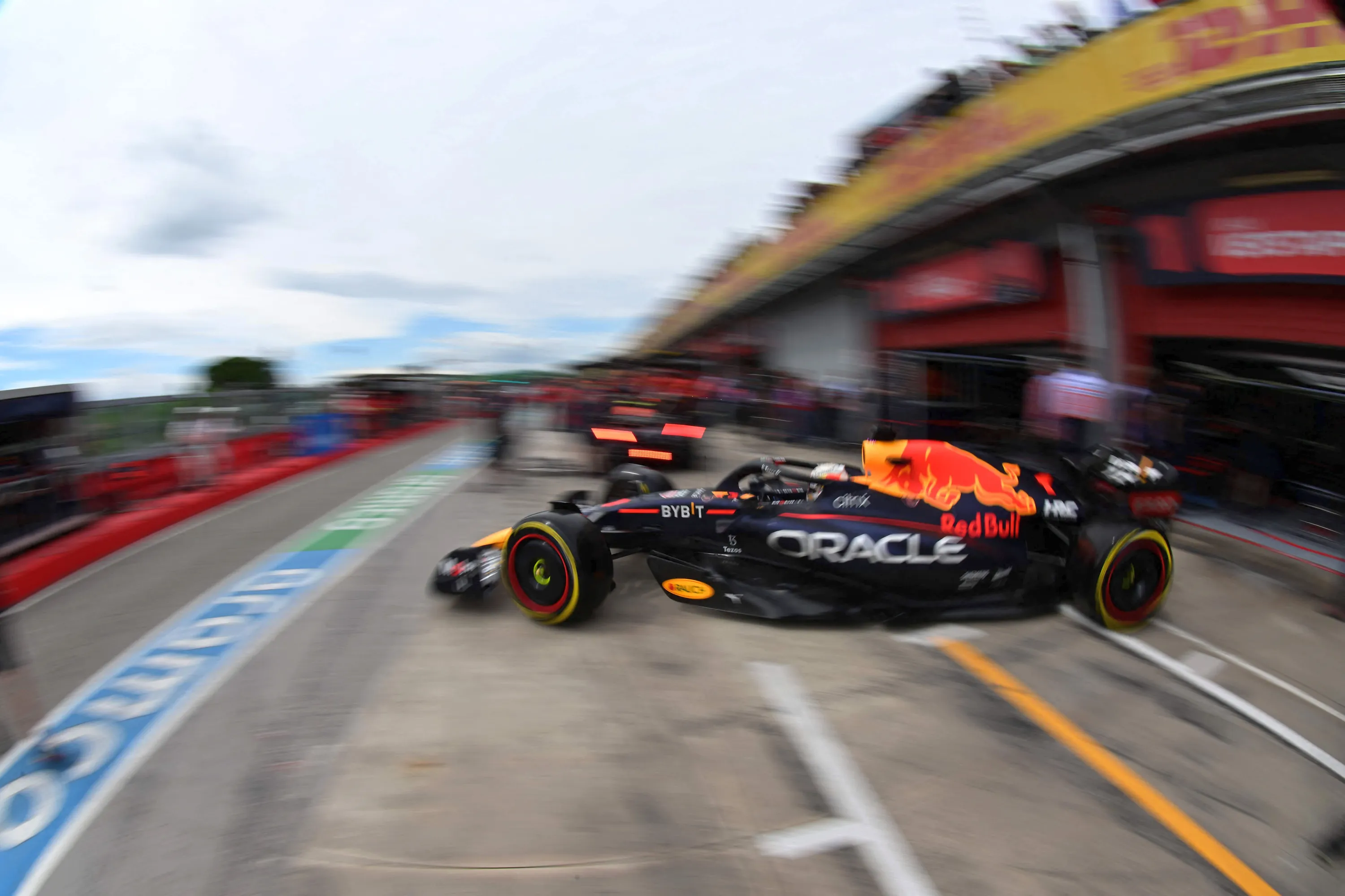 Red Bull Racing's Dutch driver Max Verstappen leaves the pit during the second practice session at the Autodromo Internazionale Enzo e Dino Ferrari race track in Imola, Italy, on April 23, 2022, ahead of the Formula One Emilia Romagna Grand Prix. (Photo by Miguel Medina/AFP Photo)