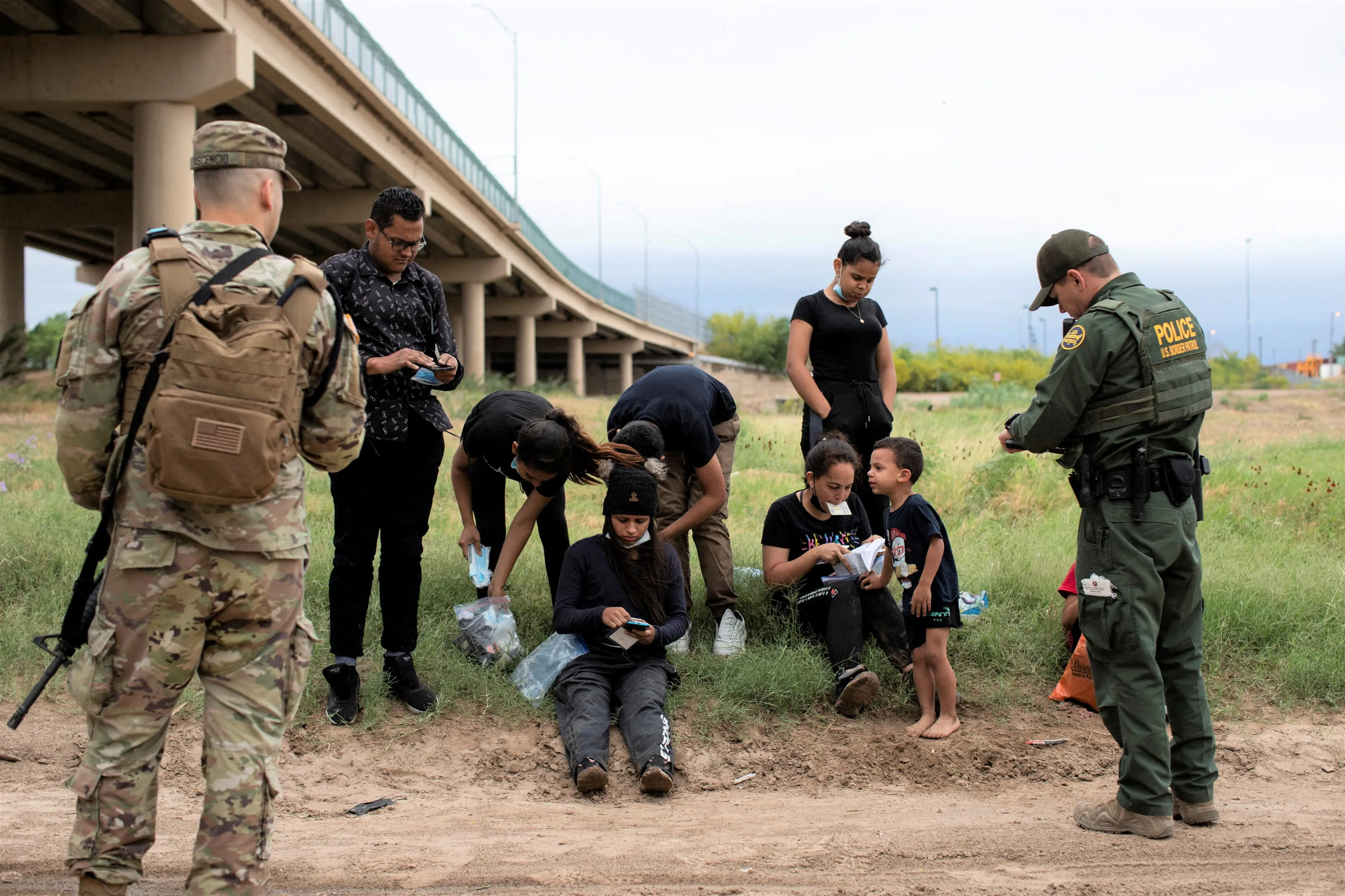 A Customs and Border Protection agent collects biographical information from a group of Venezuelan migrants before taking them into custody near the southern border town of Eagle Pass, Texas, U.S. April 25, 2022. (Photo by Kaylee Greenlee Beal/Reuters)