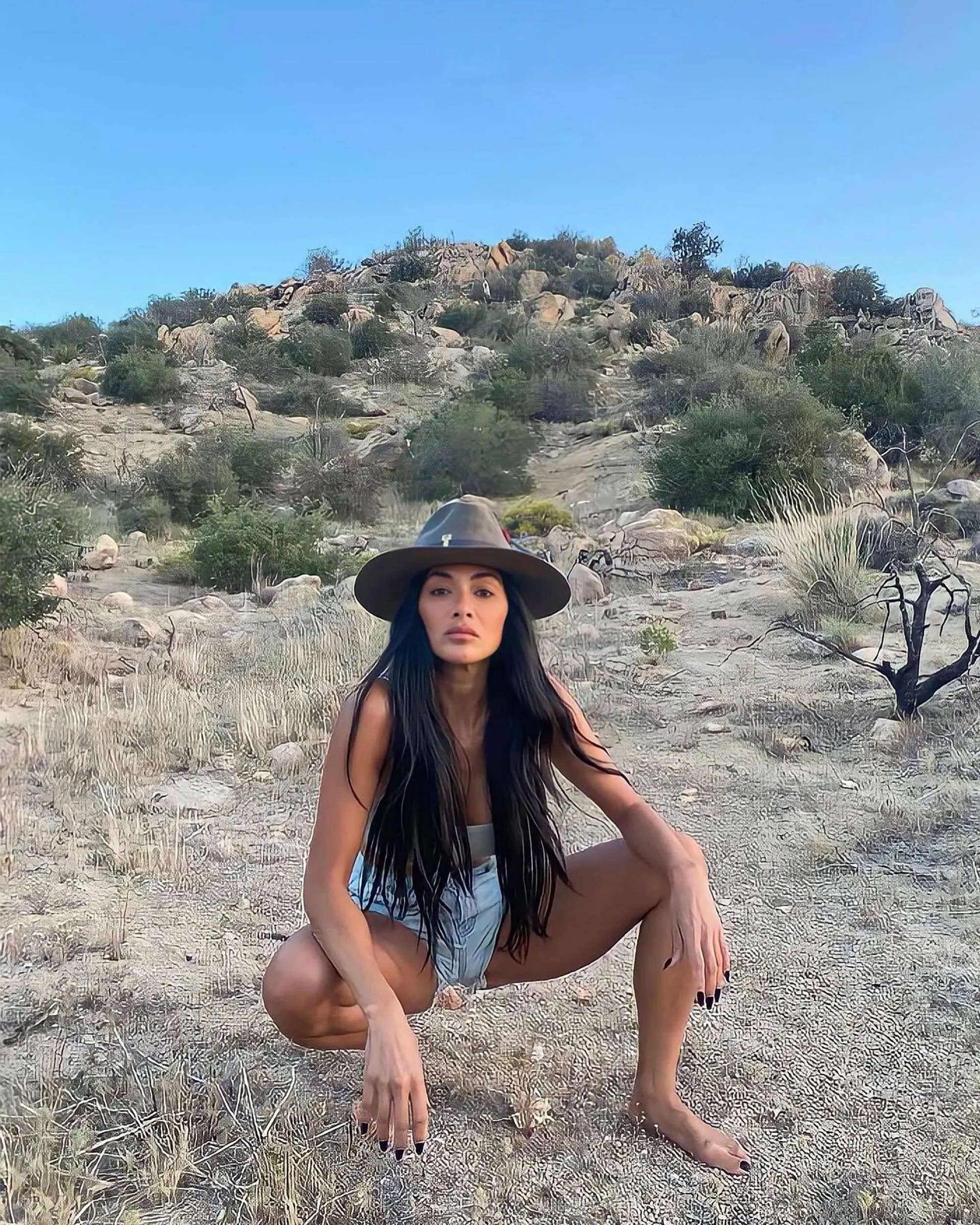 American singer Nicole Scherzinger dares to go barefoot in the desert end of April 2022. (Photo by nicolescherzinger/Instagram)