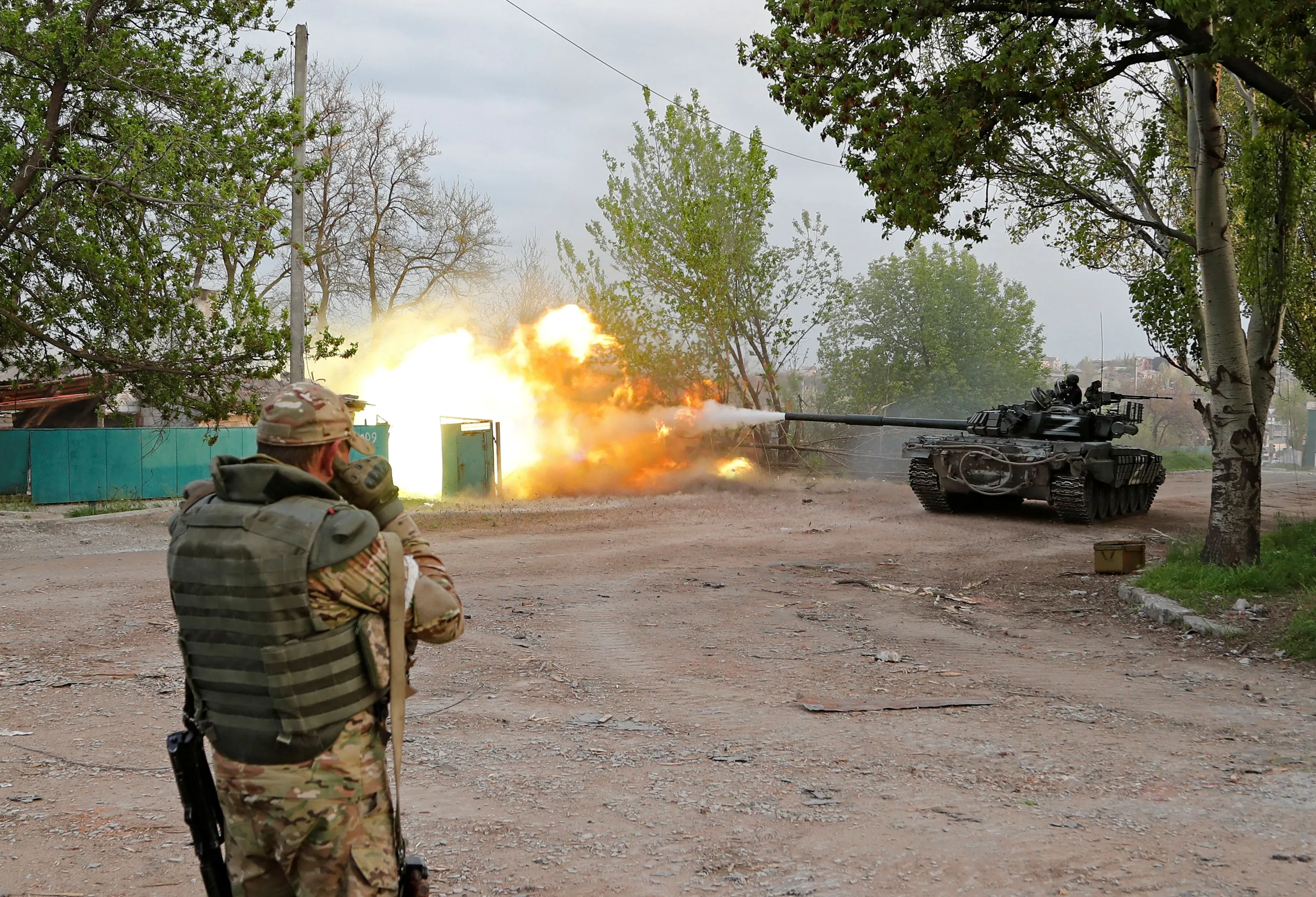Service members of pro-Russian troops fire from a tank during fighting in Ukraine-Russia conflict near the Azovstal steel plant in the southern port city of Mariupol, Ukraine on May 5, 2022. (Photo by Alexander Ermochenko/Reuters)