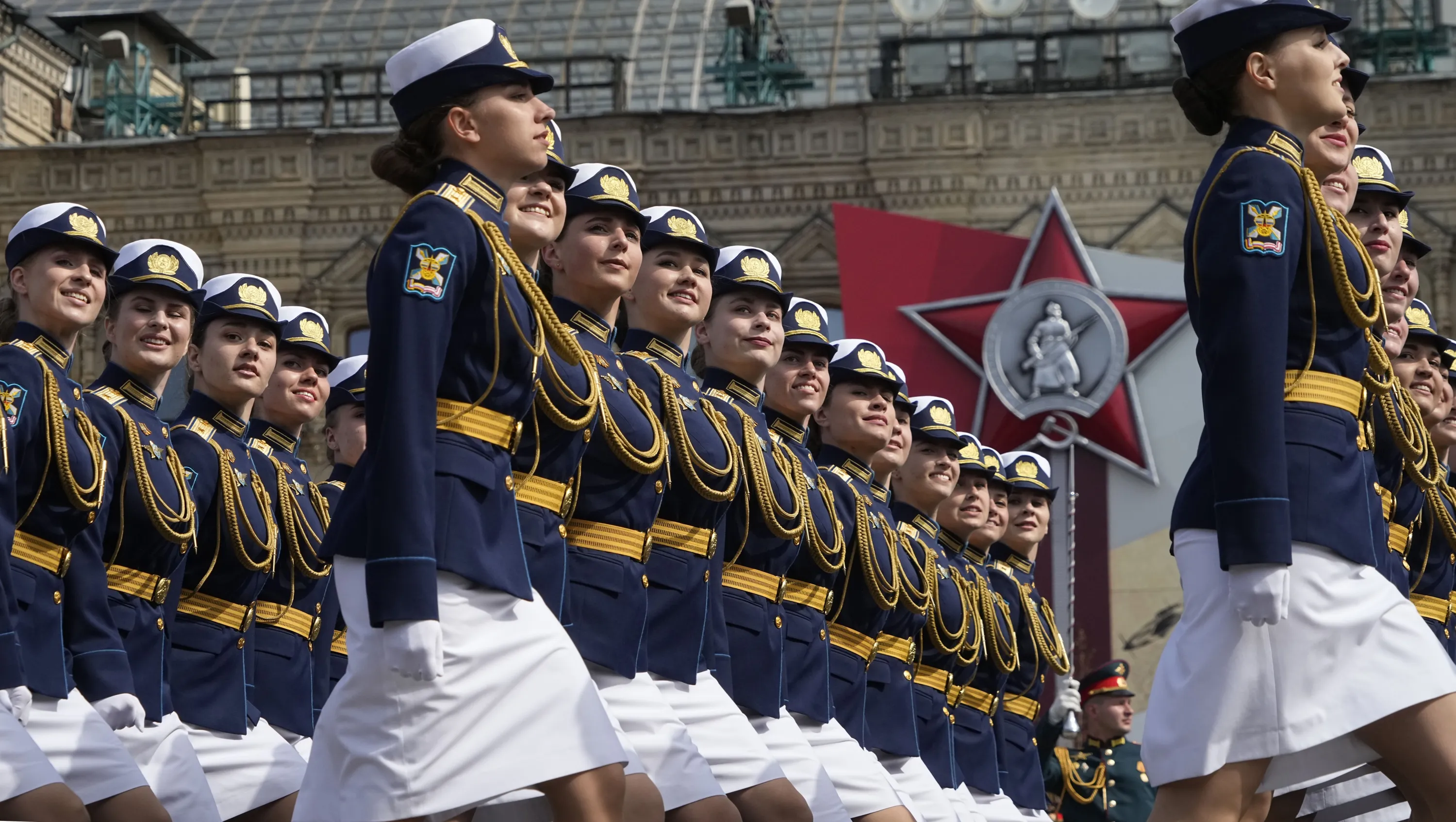Russian servicewomen march during a dress rehearsal for the Victory Day military parade in Moscow, Russia, Saturday, May 7, 2022. (Photo by Alexander Zemlianichenko/AP Photo)
