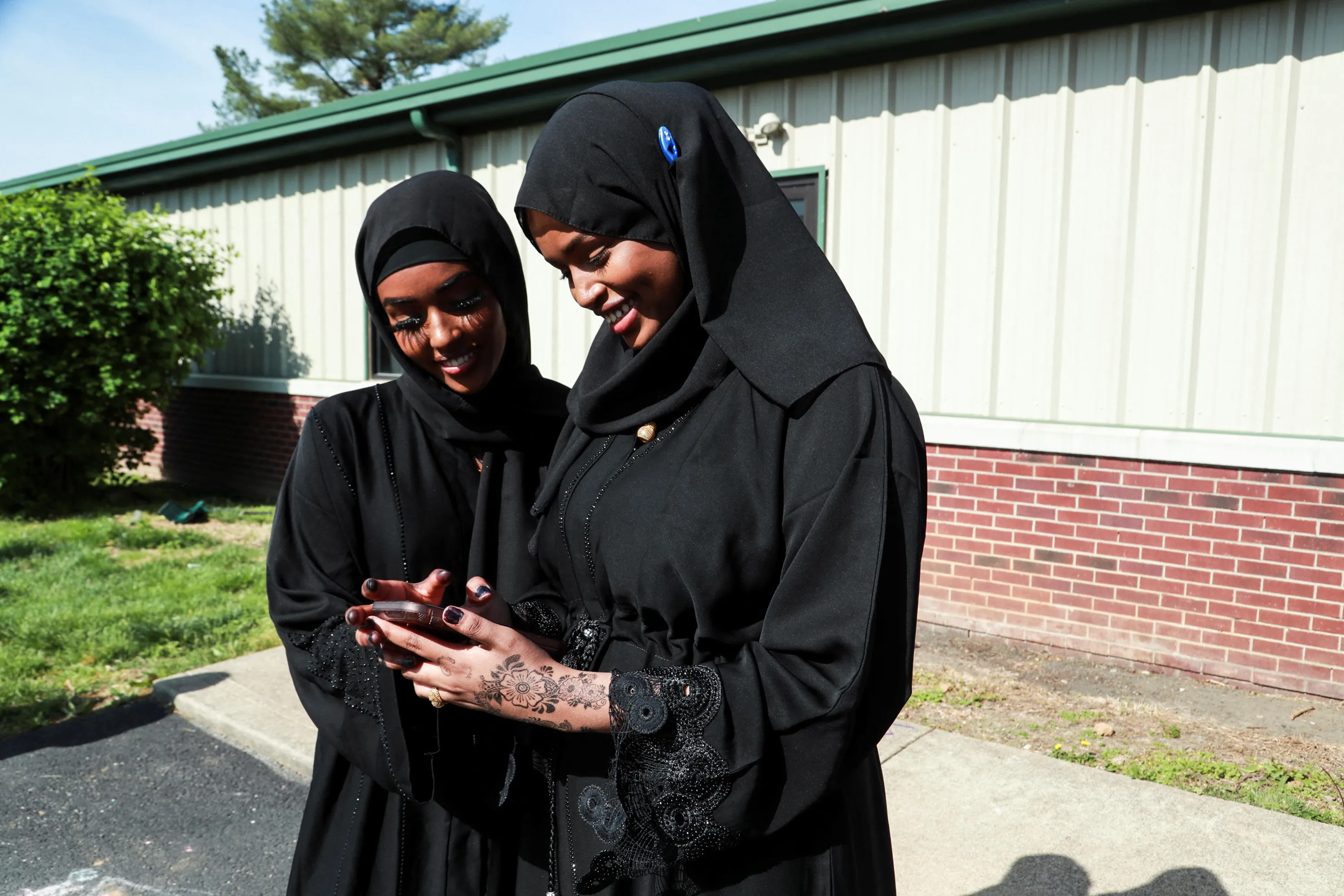 Somali Muslims are looking at their selfies taken at the Guiding Light Islamic Center in celebration of the Muslim festival of Eid in Louisville, Kentucky, U.S., May 2, 2022. (Photo by Amira Karaoud/Reuters)