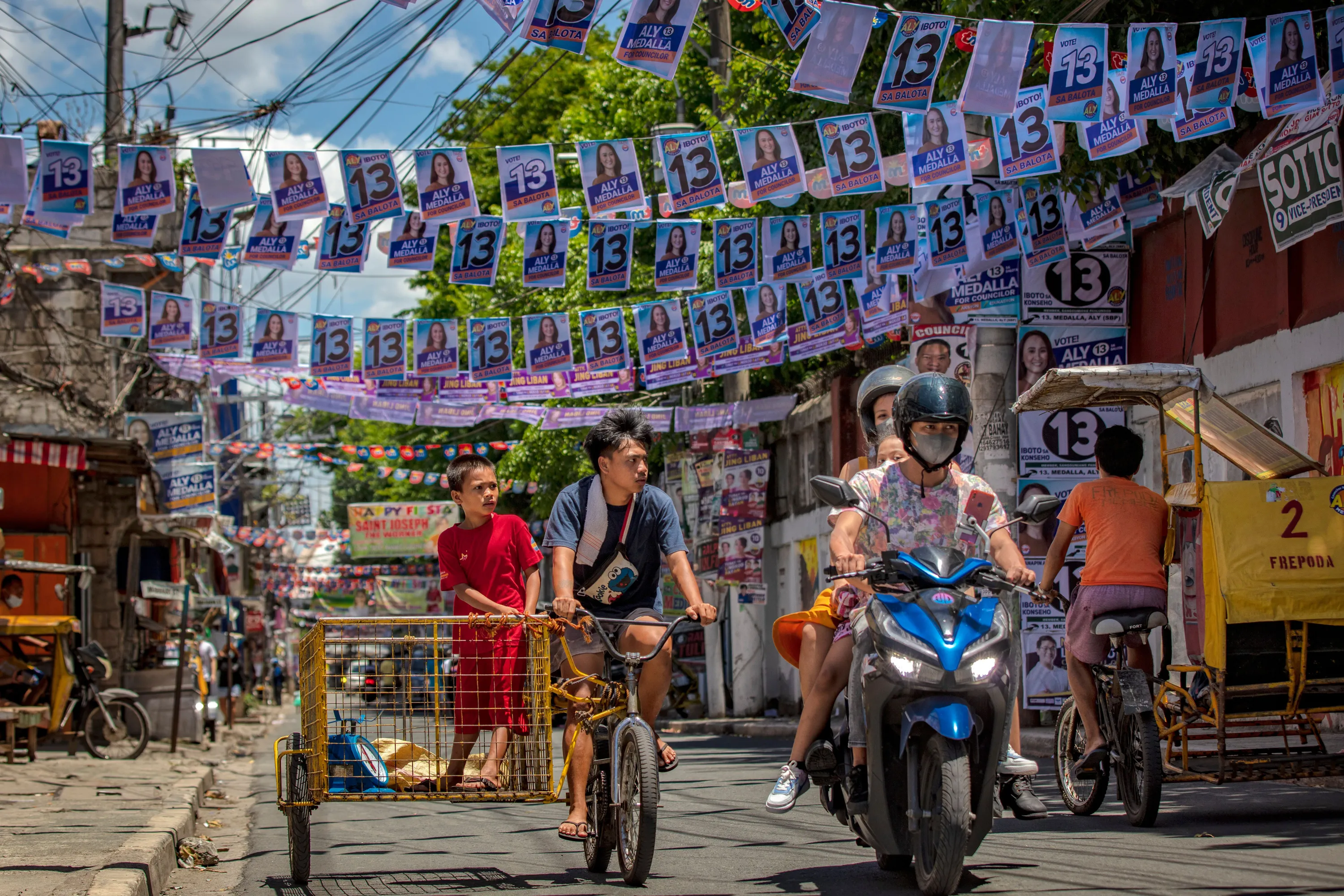 A street filled with campaign posters is seen a day before 67 million Filipinos head to the polls to elect a new set of leaders, on May 08, 2022 in Quezon city, Metro Manila, Philippines. The son and namesake of ousted dictator Ferdinand Marcos Sr., who was accused and charged of amassing billions of dollars of ill-gotten wealth as well as committing tens of thousands of human rights abuses during his autocratic rule, has mounted a hugely popular campaign to return his family name to power. Ferdinand "Bongbong" Marcos Jr. enjoys a wide lead in opinion polls against his main rival, Vice President Leni Robredo, owing to a massive disinformation campaign that has effectively rebranded the Marcos dictatorship as a “golden age”. Marcos is running alongside Davao city Mayor Sara Duterte, the daughter of outgoing President Rodrigo Duterte who is the subject of an international investigation for alleged human rights violations during his bloody war on drugs. (Photo by Ezra Acayan/Getty Images)