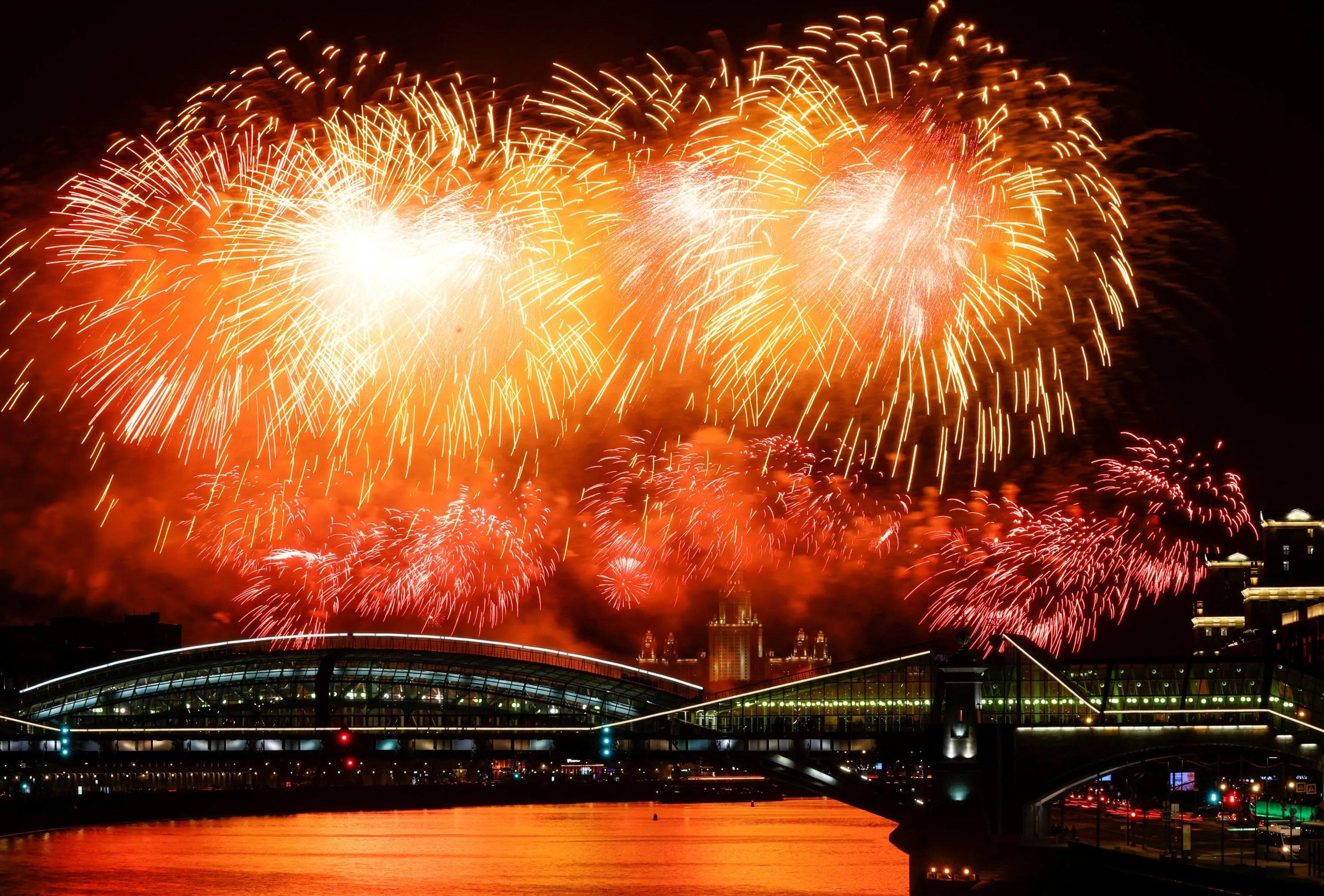 Fireworks explode on Victory Day, which marks the 77th anniversary of the victory over Nazi Germany in World War Two, in Moscow, Russia