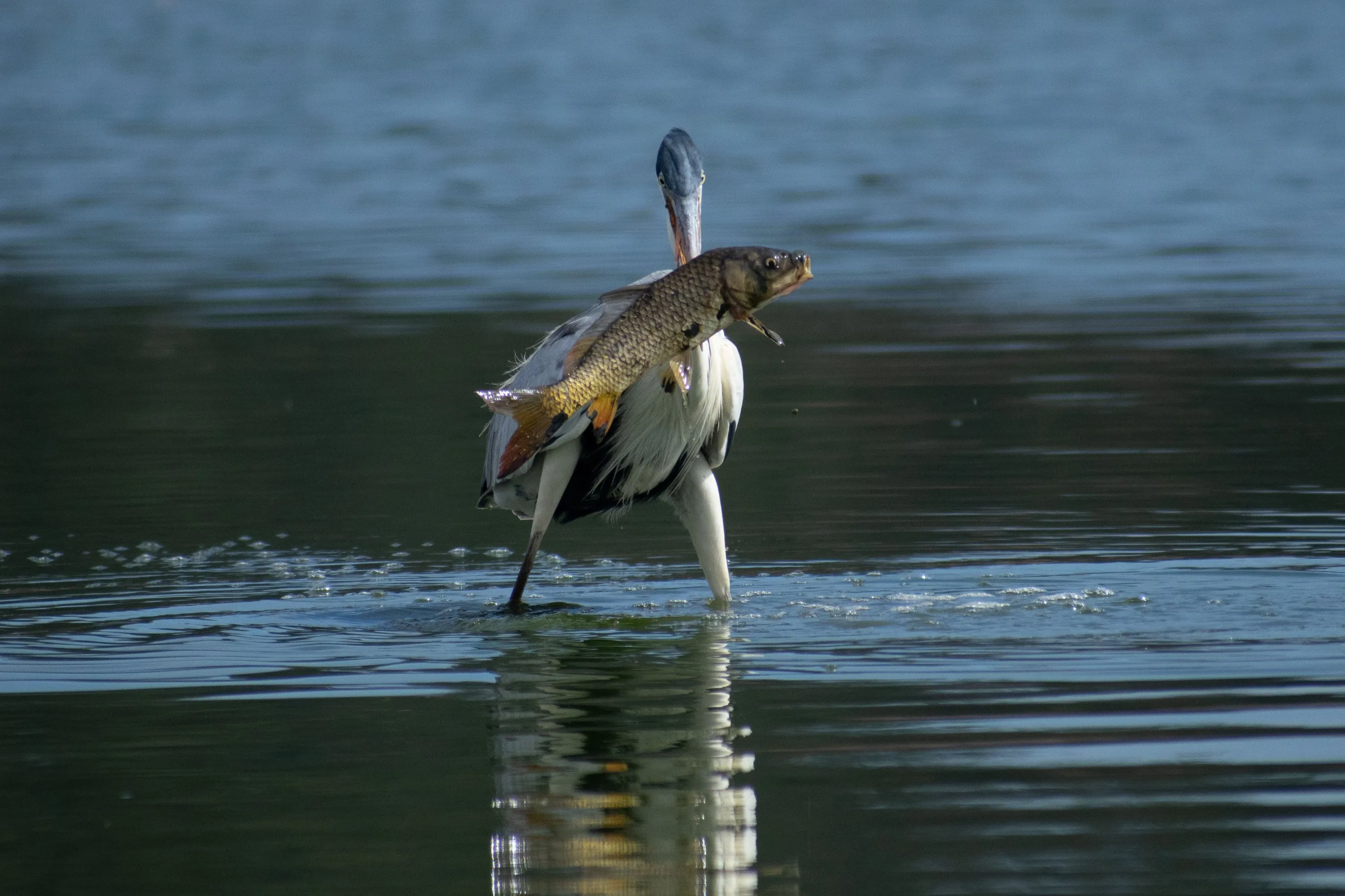 A heron catches a carp fish in Lake Penuelas, Chile on April 21, 2021. (Photo by Matias Basualdo/ZUMA Press Wire/Rex Features/Shutterstock)