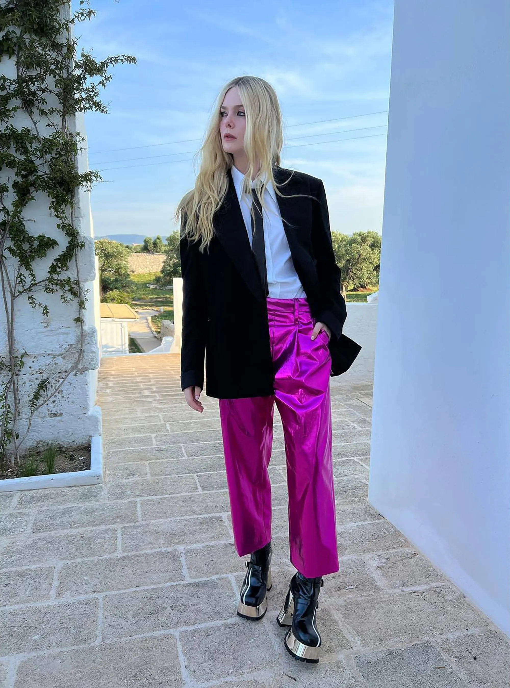 American actress Elle Fanning shows off her Gucci look in the second decade of May 2022. (Photo by ellefanning/Instagram)