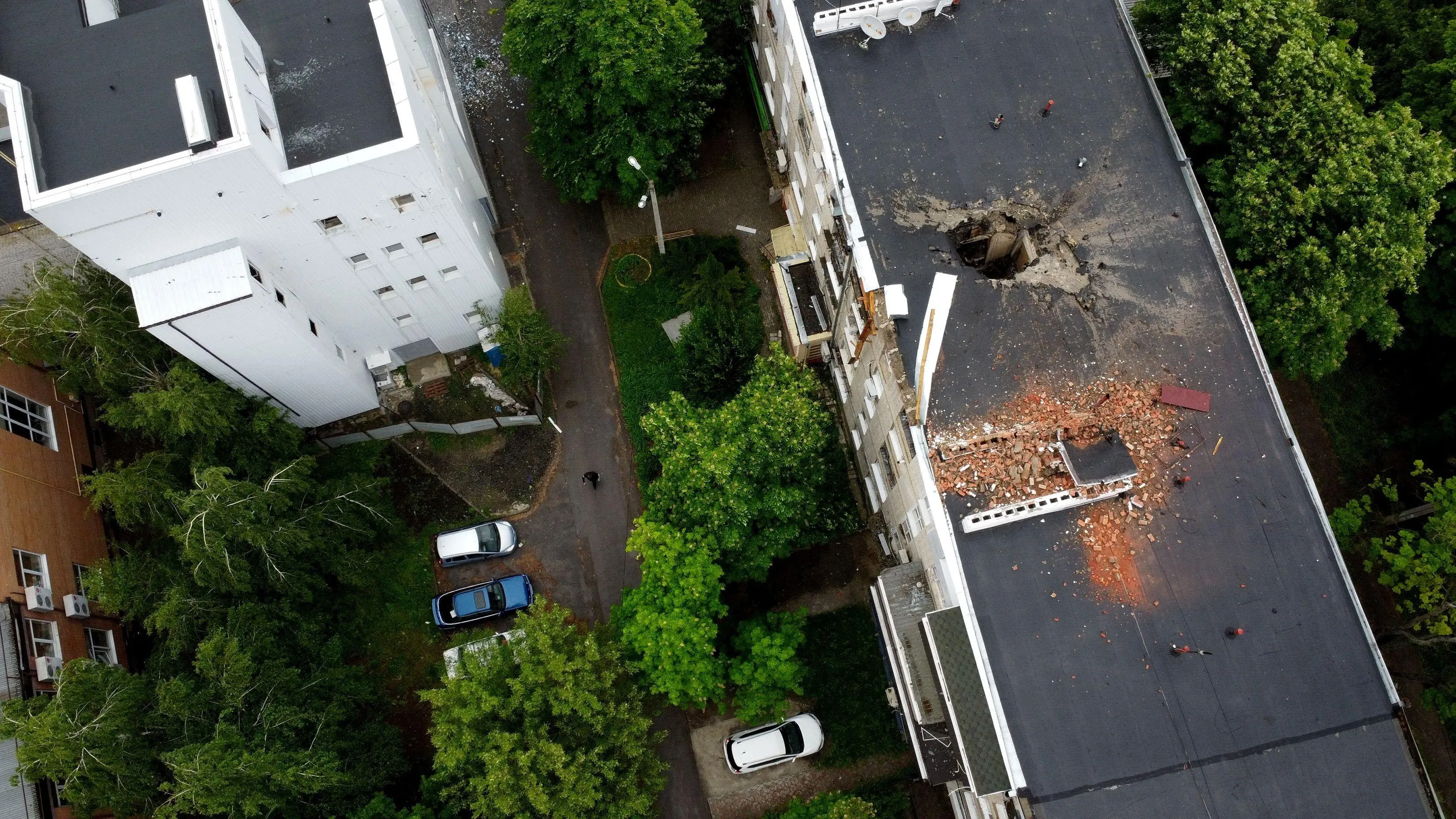 A view of damages on a building's roof after a shelling at a residential area, as Russia's attack on Ukraine continues, in Kharkiv, Ukraine on May 26, 2022. (Photo by Ivan Alvarado/Reuters)